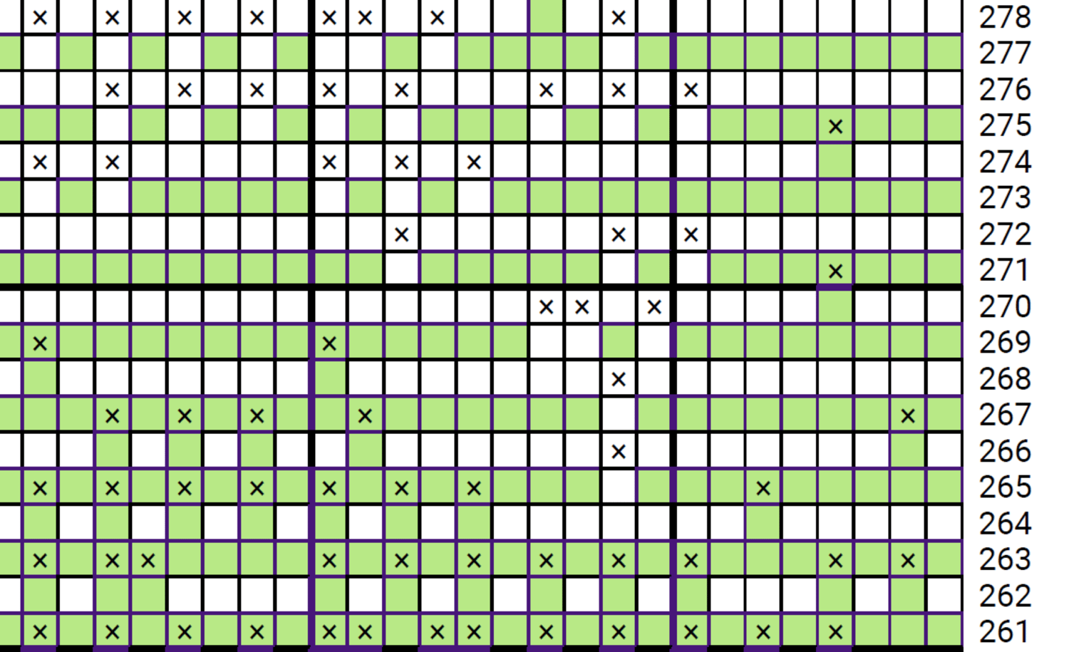 - Written pattern, row by row in PDF