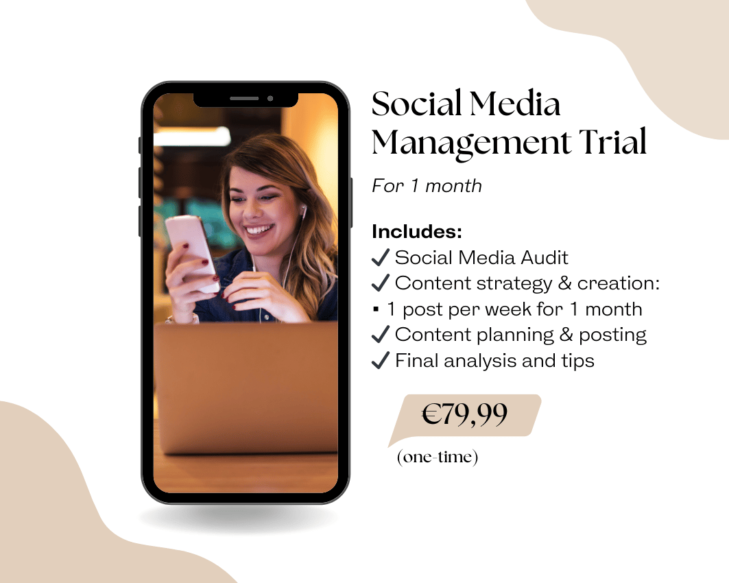 For just €79.99, get a 1-month exclusive trial that introduces you to our expert marketing services, designed to help your business shine online. This one-time trial is perfect for businesses looking to enhance their social media presence without a long-term commitment. Here’s what you’ll get: