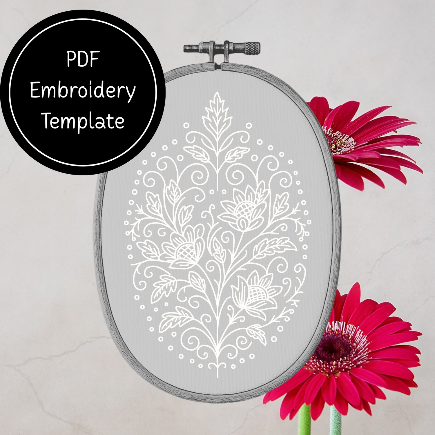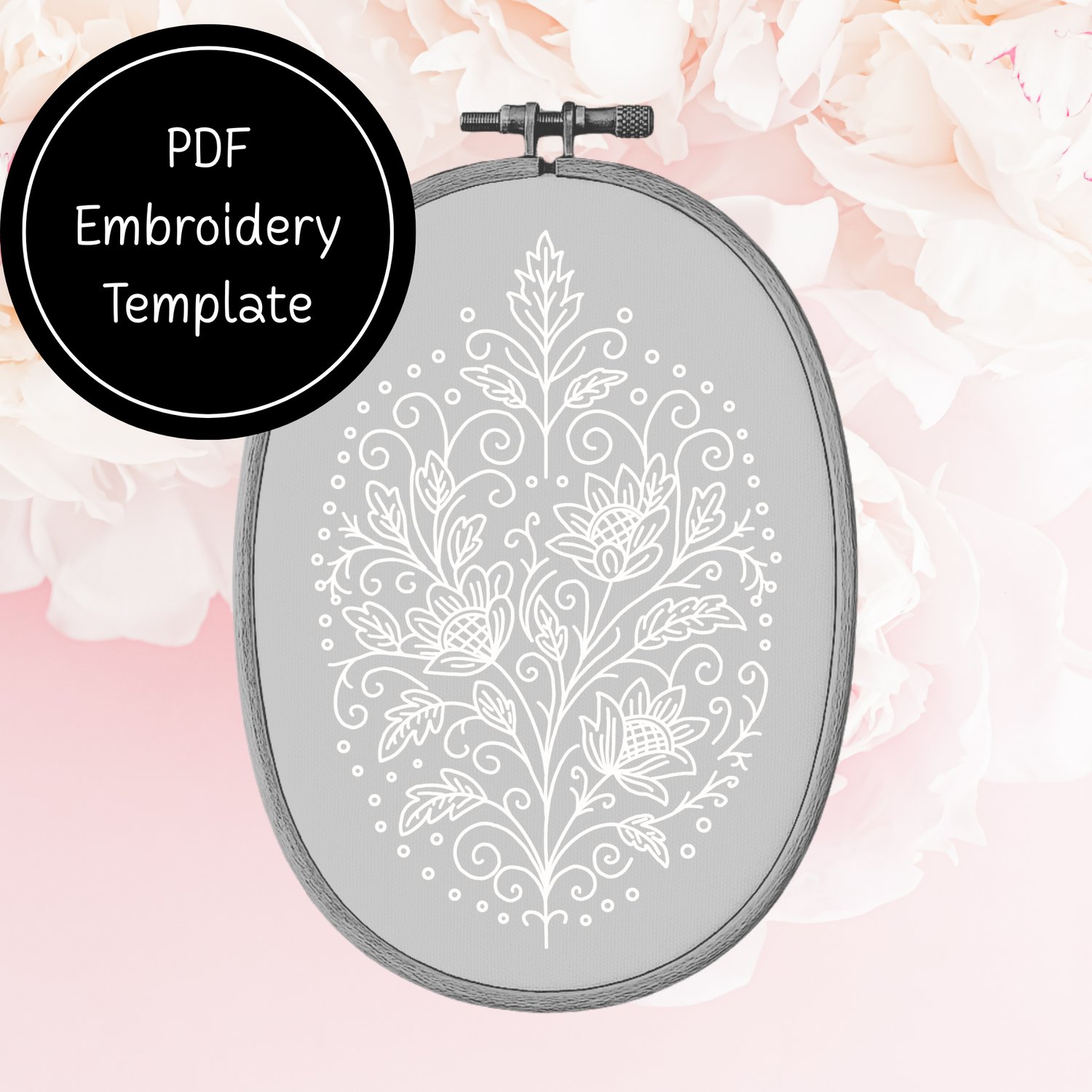 Whitework Crosshatch Flower Hand Embroidery Template - Instant Download