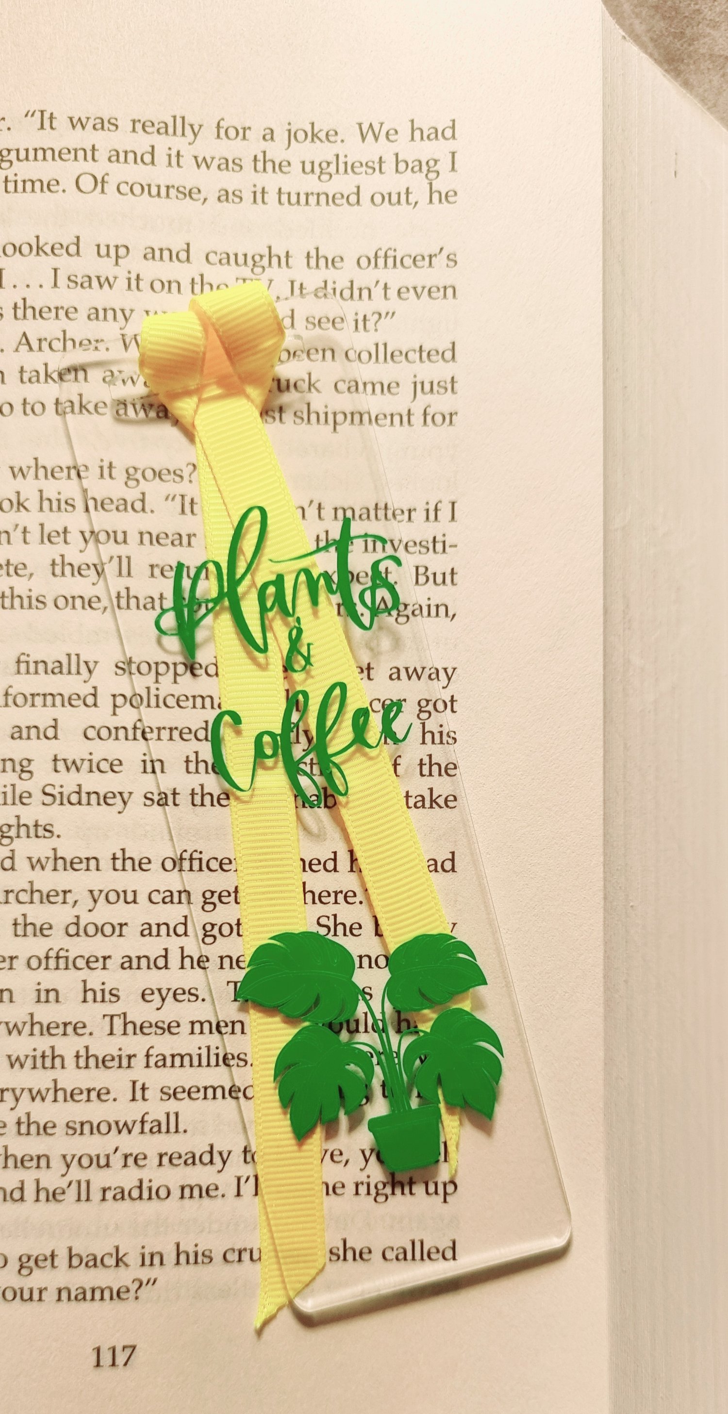 The acrylic bookmark has a depth of 2mm, a height of 3mm, and a width of 15mm, and comes with a rippling ribbon.