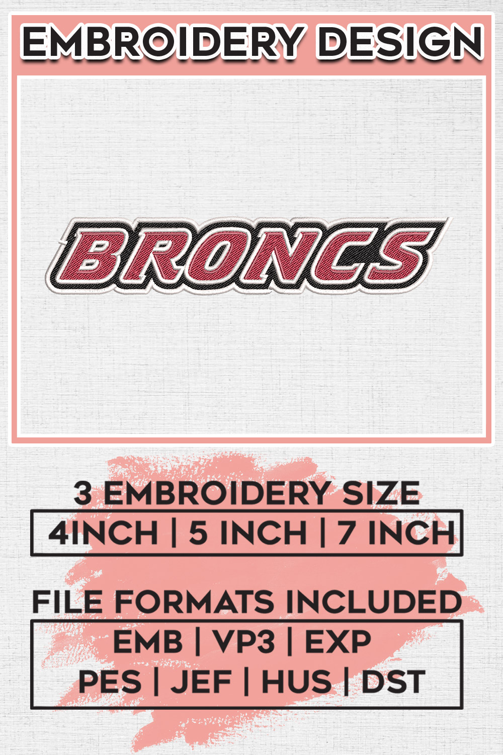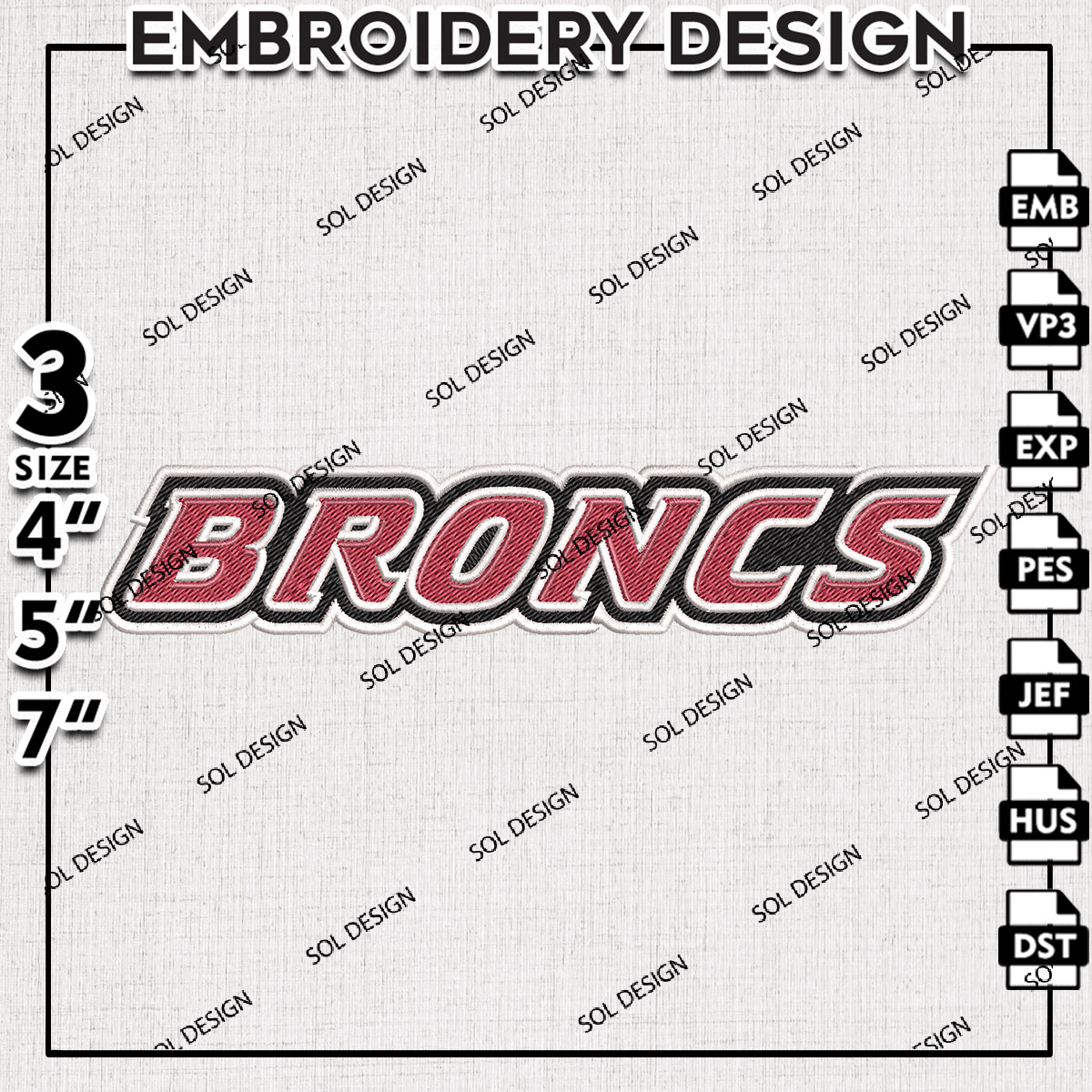 Ncaa Broncs Wordmark Logo Embroidery Design Files, NCAA Rider Broncs Machine Embroidery Files, NCAA Logo embroidery designs, Ncaa Broncs Logo, Digital Download