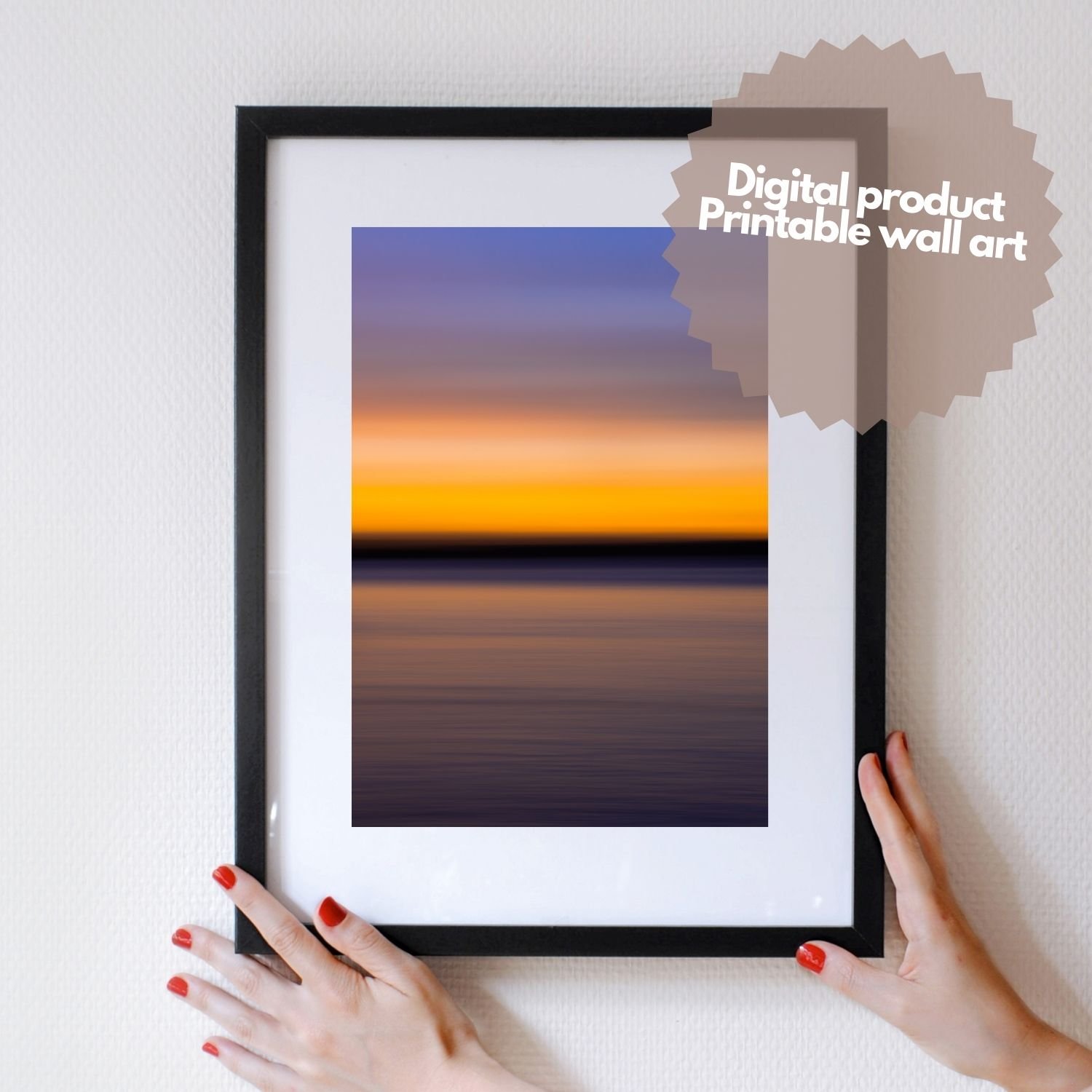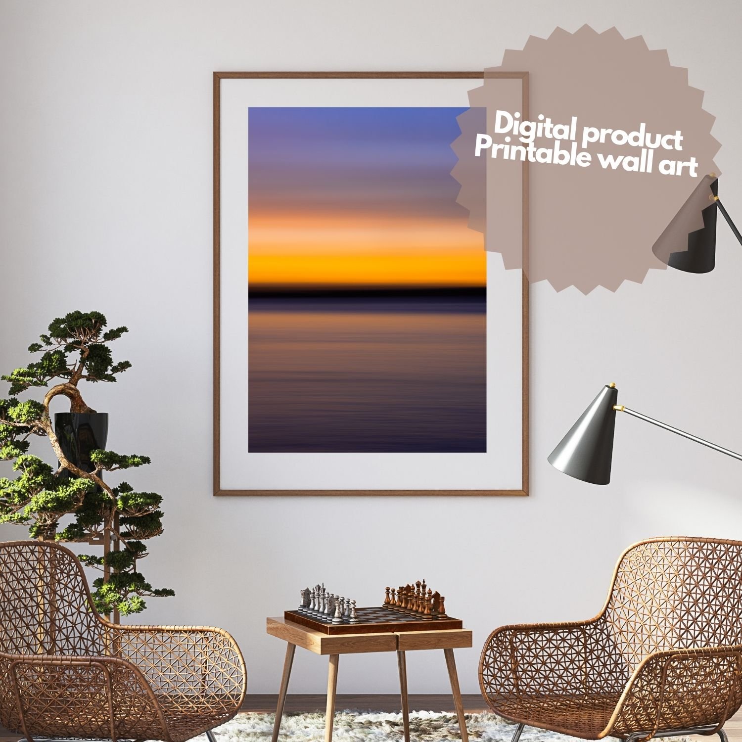 A digital file for printing; Sunset intentional camera movement (ICM) at the lake. Printable wall art. Digital product.