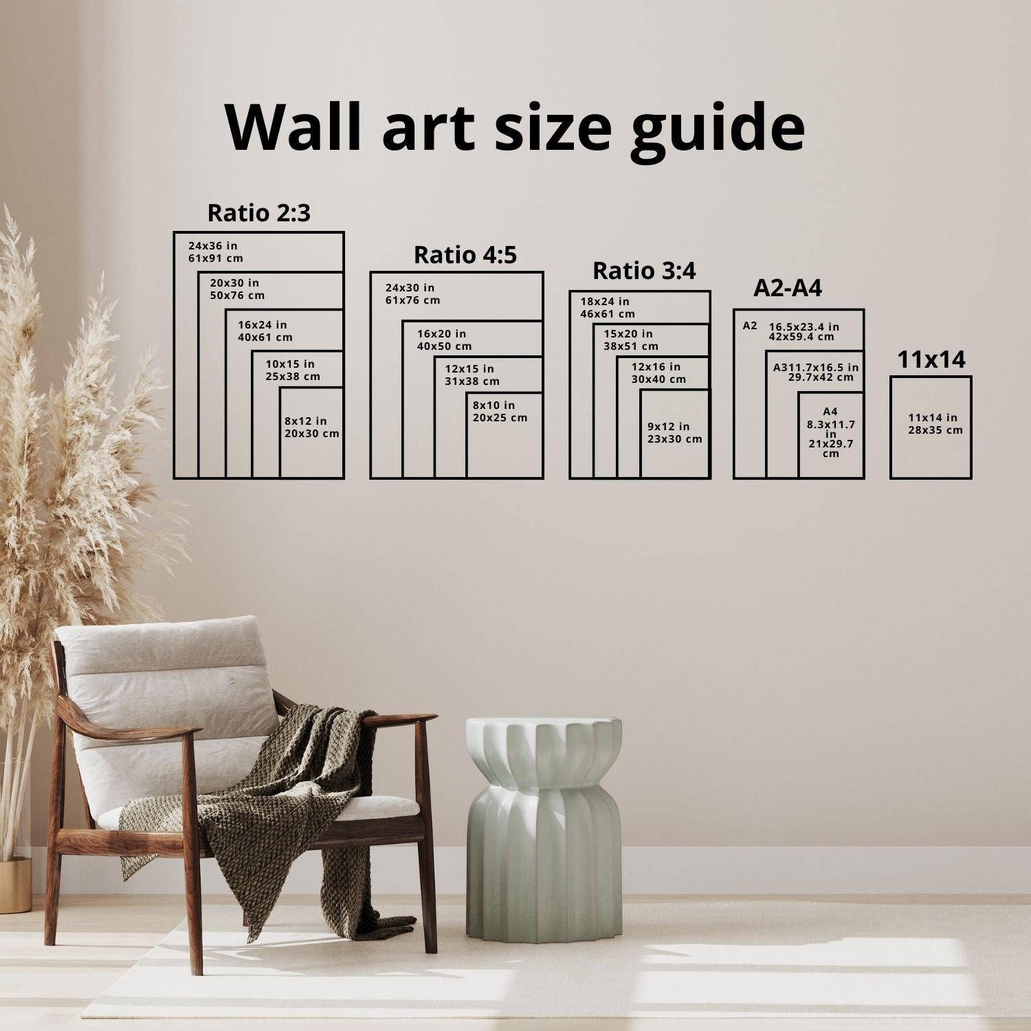 Please see the Wall art size guide in the photo gallery of this product for more information.