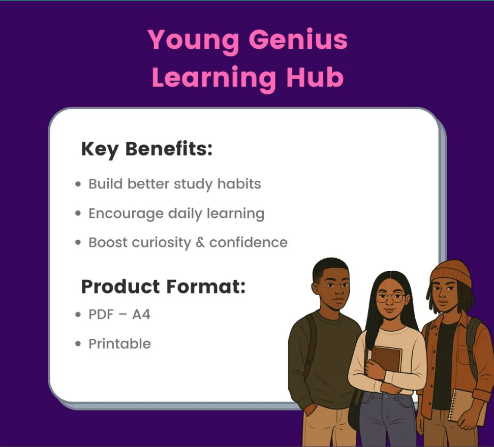 Empower young minds to discover their unique learning style and take pride in their educational journey with the Young Genius Learning Hub – a vibrant, printable workbook designed to support children aged 4–16, with or without additional needs.