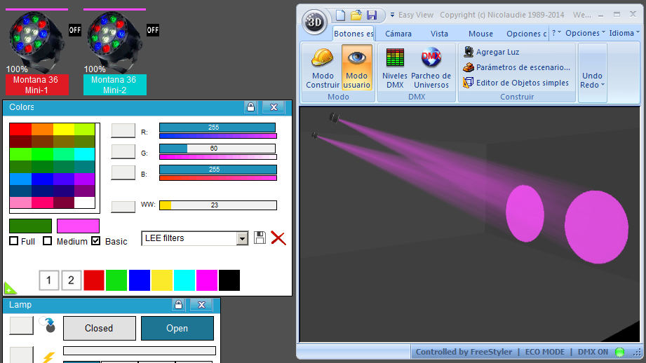 Esta Librería SSL2 está optimizada para trabajar con Magic 3d Easy View. Es decir para ver una representación 3D de las secuencias que estemos realizando con Freestyler, QLC+ o cualquier otro soft que se conecte con Magic 3d.
