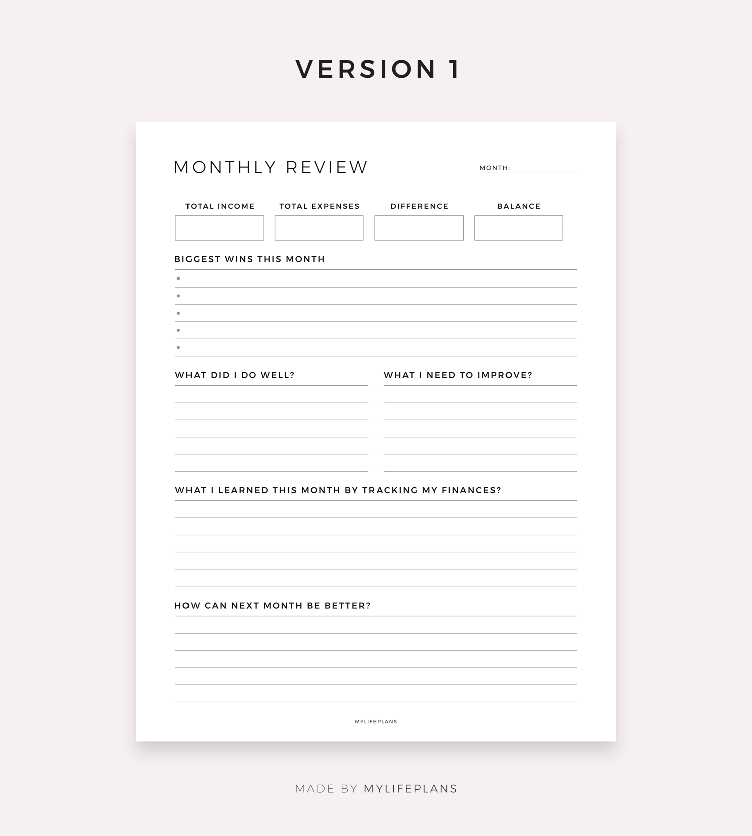 Monthly Financial Review, Digital Template for Goodnotes, Notability, Ipad