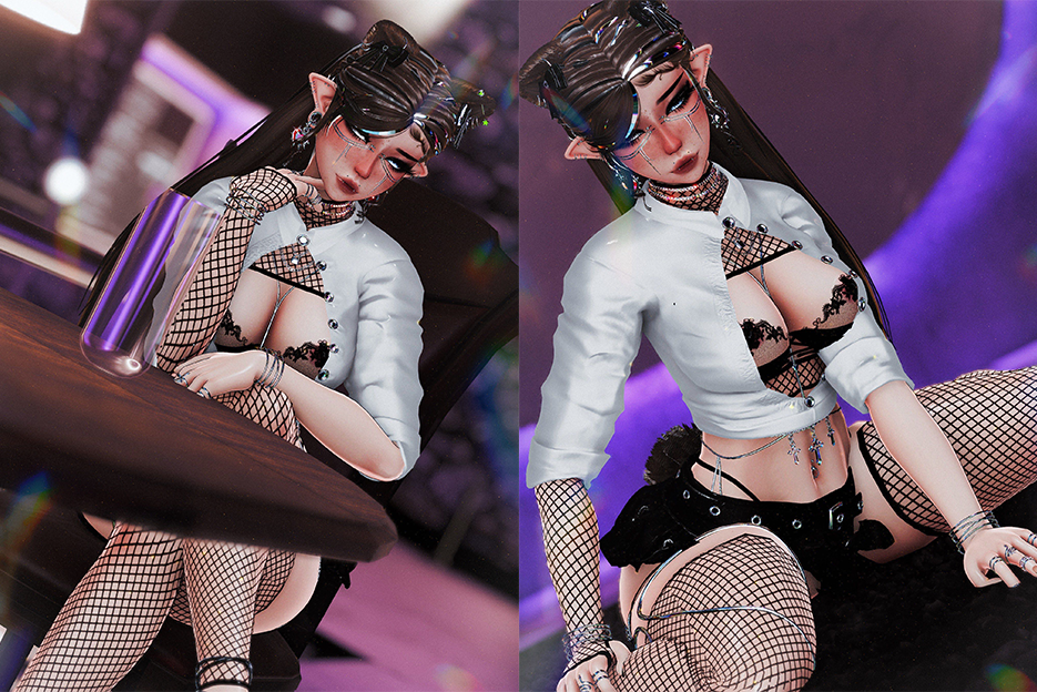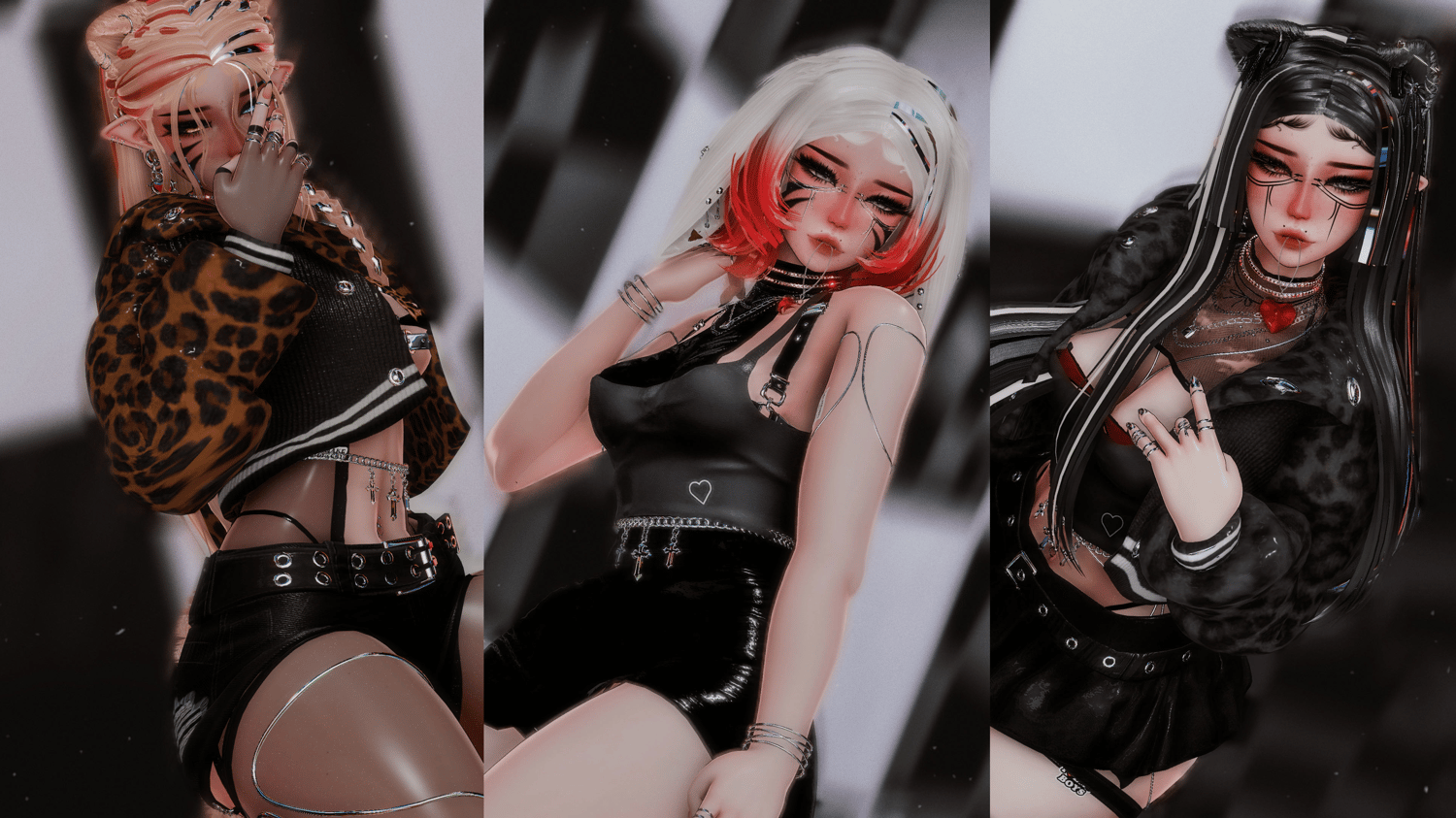 Body and Head - Akiihead (hxzie notakii) zinpia (Do NOT re use edited by me) / Face texture - nayao.co / Skirt/Fishnets/Shirt/Boots - weeeby / Chest harness - ares.vr / Hairs - Vampidoll saikura navv Nessy! tinkvr saikura / Hips Garter/Chest Chain/Body Metal nauuki / Pants/Top - thethiccwitch / Bra/Under/Blindfold - cringy! / Pasties - naudine / Petals/Blindfold/Shorts/DevilSet - Nessy! / Dress - kri#1214 / EdgeHair - saikura / Bandaids - cigi.dev / Social Shirt/Tie/Stickers - milkymutt / Heels/Jacket - yuuriii / Ears/Earrings/Rings/Necklace/Body Piercings - beaniebaby. / Face Metal/Pendant - devilishsly / Nails - r3dacted_ / Bunny set - JinxieWinks / Cat Set - strelizias#0002 / Bows - ai / Bodysuit - winxie. / Tattoo - _lunii / Charm/Rose Harness/Rose Crown/Horns - aikavr / metal fangs - koragira
