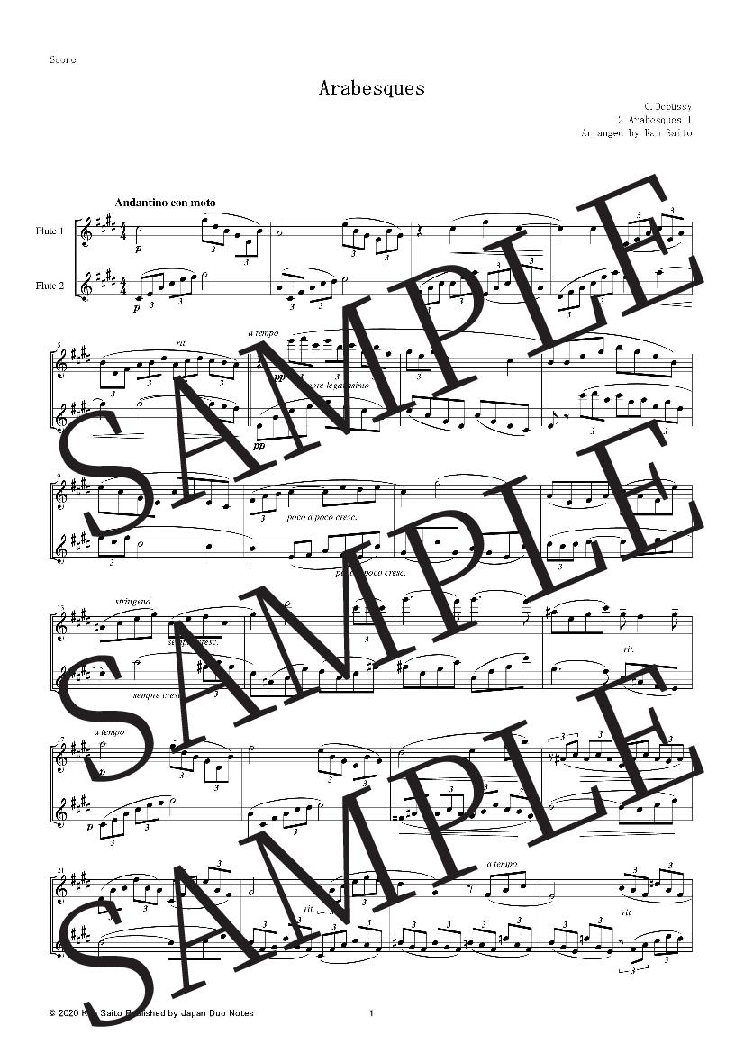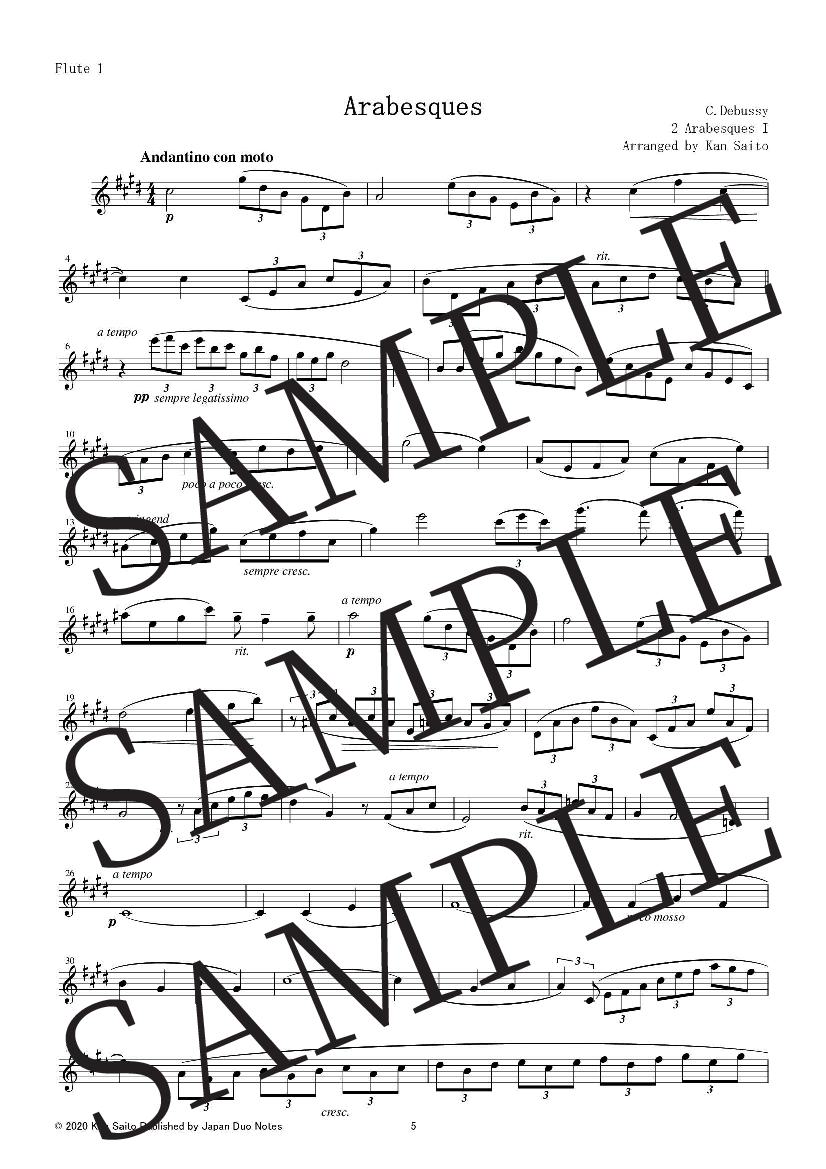 This arrangement allows you to perform Debussy’s Arabesque No.1 with just two flutes, without piano accompaniment.