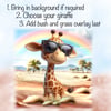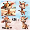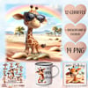 Funny and cute giraffes. 12 individual giraffes; cute, funny, angry, sunglasses + FREE background and overlay. 14 PNGs. Sublimation or print