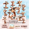 Funny and cute giraffes. 12 individual giraffes; cute, funny, angry, sunglasses + FREE background and overlay. 14 PNGs. Sublimation or print.