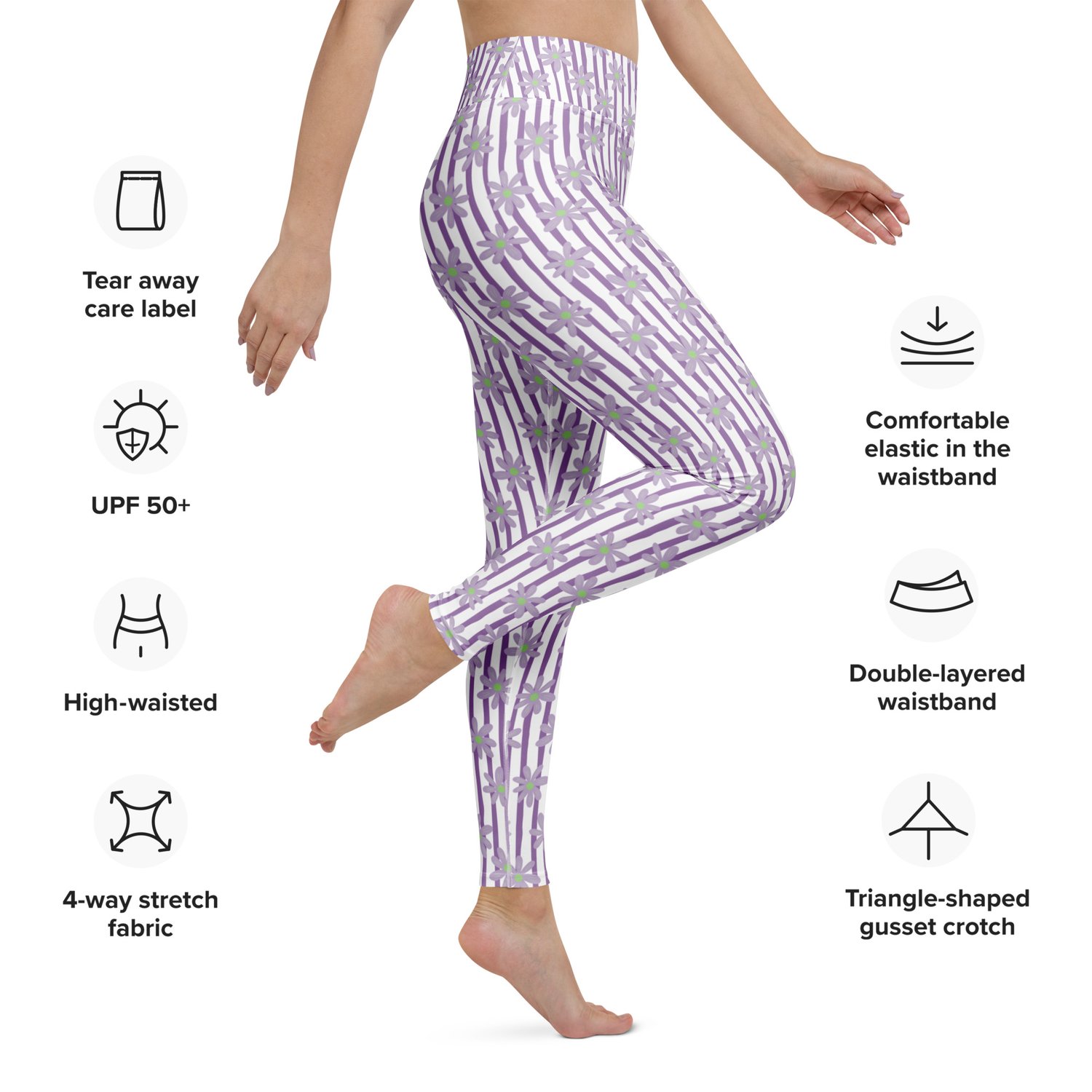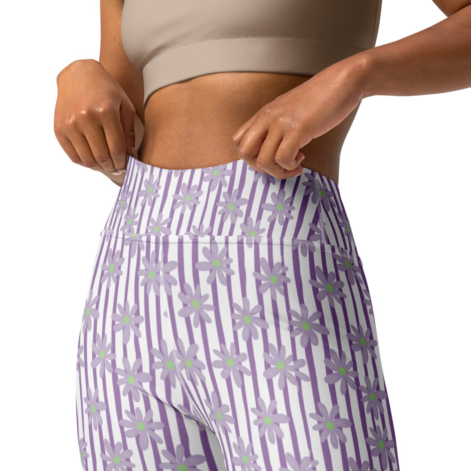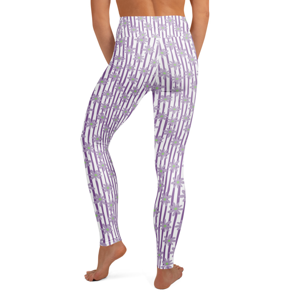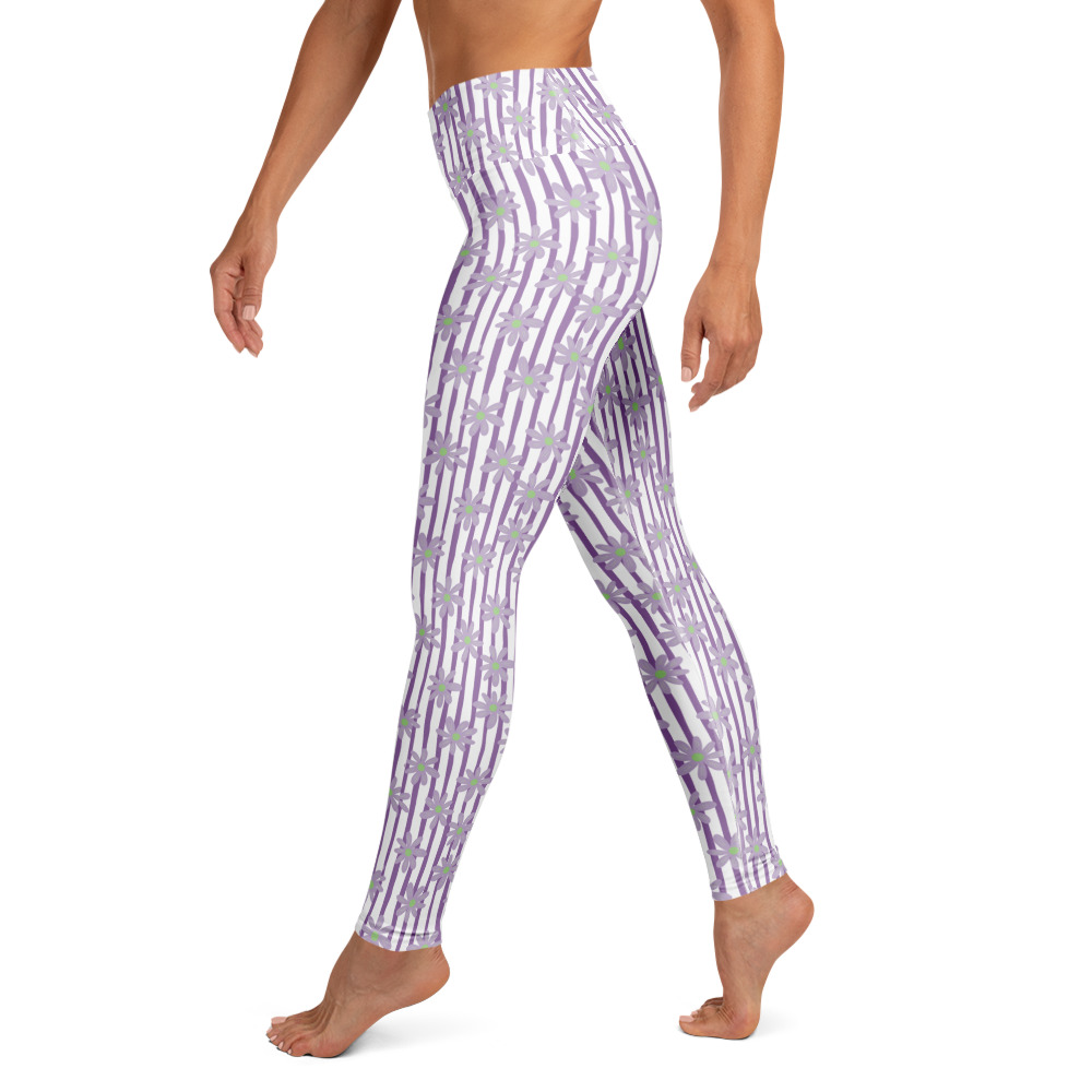 Wavy Lavender Daisies - Floral Pattern | Yoga Leggings | ESTY