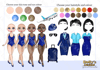 Instant digital download of our Flight Attendant in Navy and Turquoise Character Doll Bundle PNG (49 PNG’s)