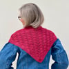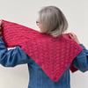 The Parquet Shawl design combines an interesting shawl shape with a meditative textured stitch pattern inspired by geometric patterning found on parquet flooring. Rectangular blocks of contrasting stocking stitch and garter stitch texture emerge from a series of central triangles. The stitch pattern blocks are shaped using eyelet increases and corresponding decreases, with additional blocks gradually added as the triangle lengthens and widens.