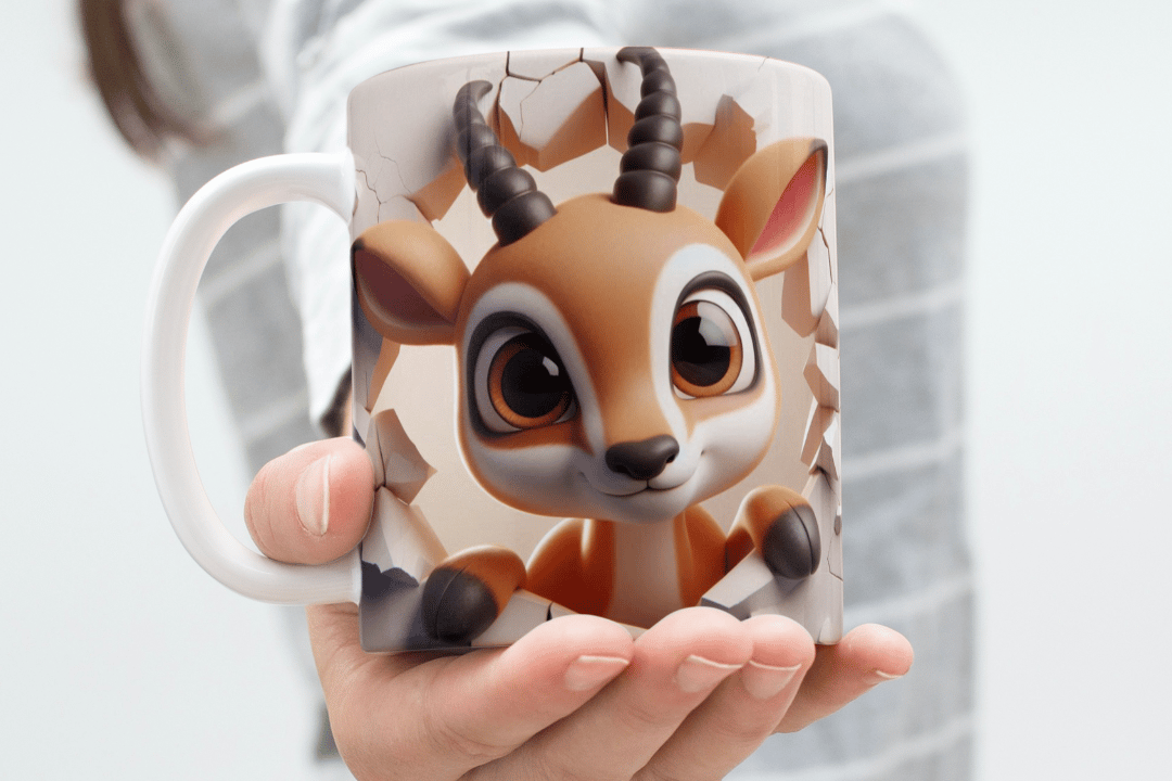 Add a dash of elegance and playfulness to your mug creations with this charming 3D gazelle cartoon. Perfect for crafting unique, standout mugs that everyone will admire!