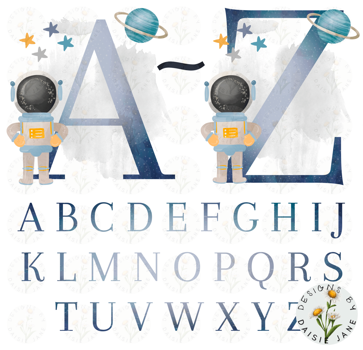 Astronaut Alphabet A-Z, 26 letters, png, clipart