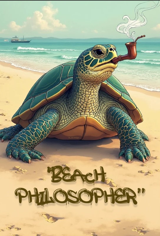 Meet the Beach Philosopher β a chill, pipe-smoking turtle with wisdom in its shell and waves in its soul.