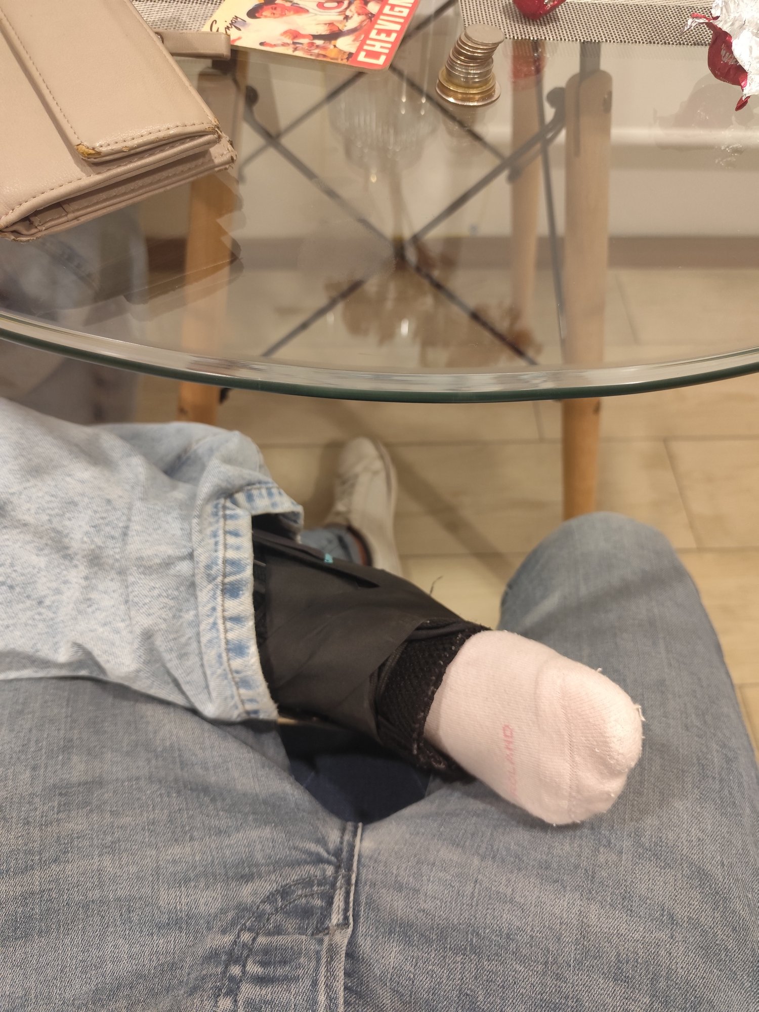 20 minutes video, with crutching around barefoot - with sock- with ankle brace.
