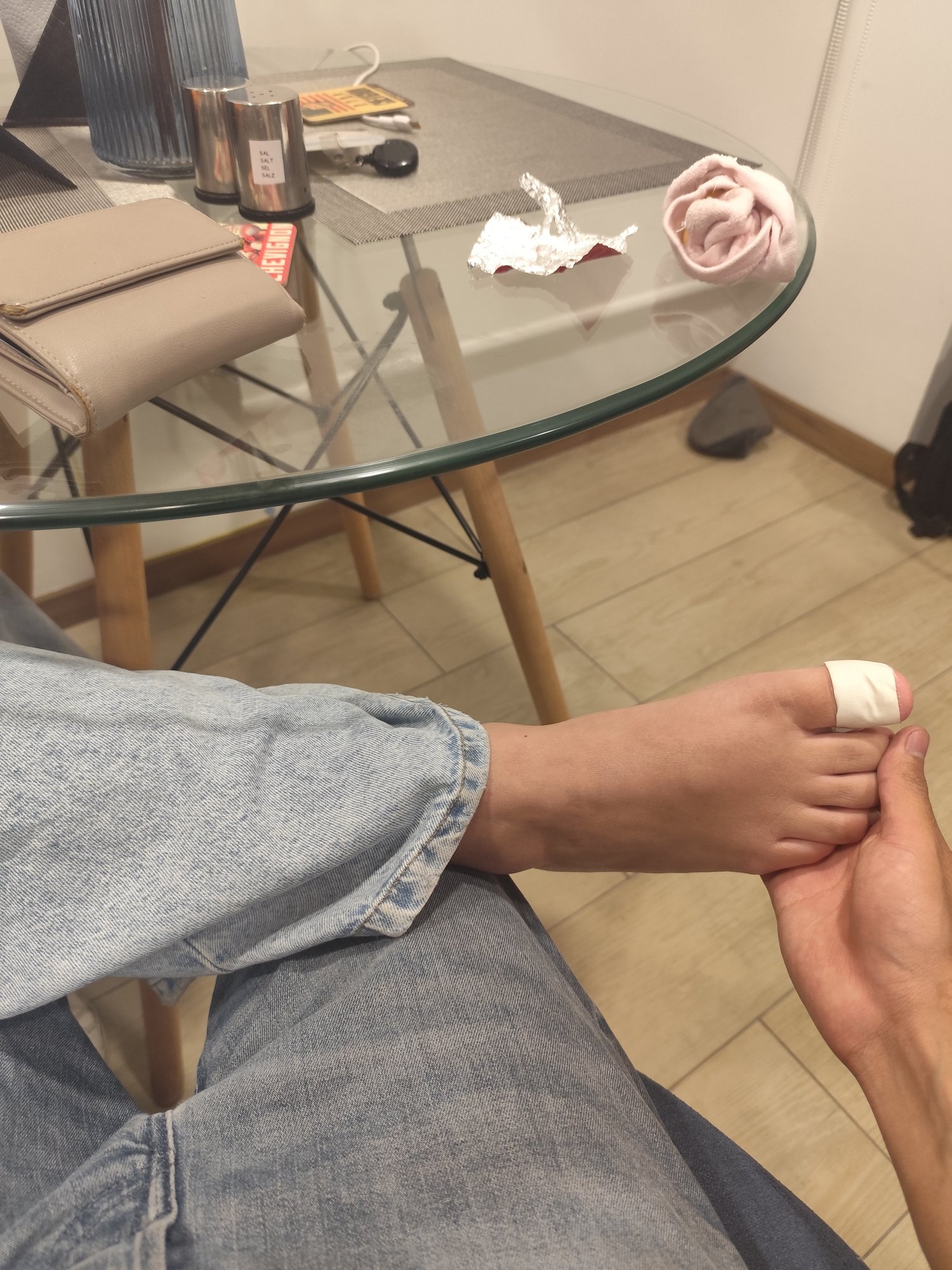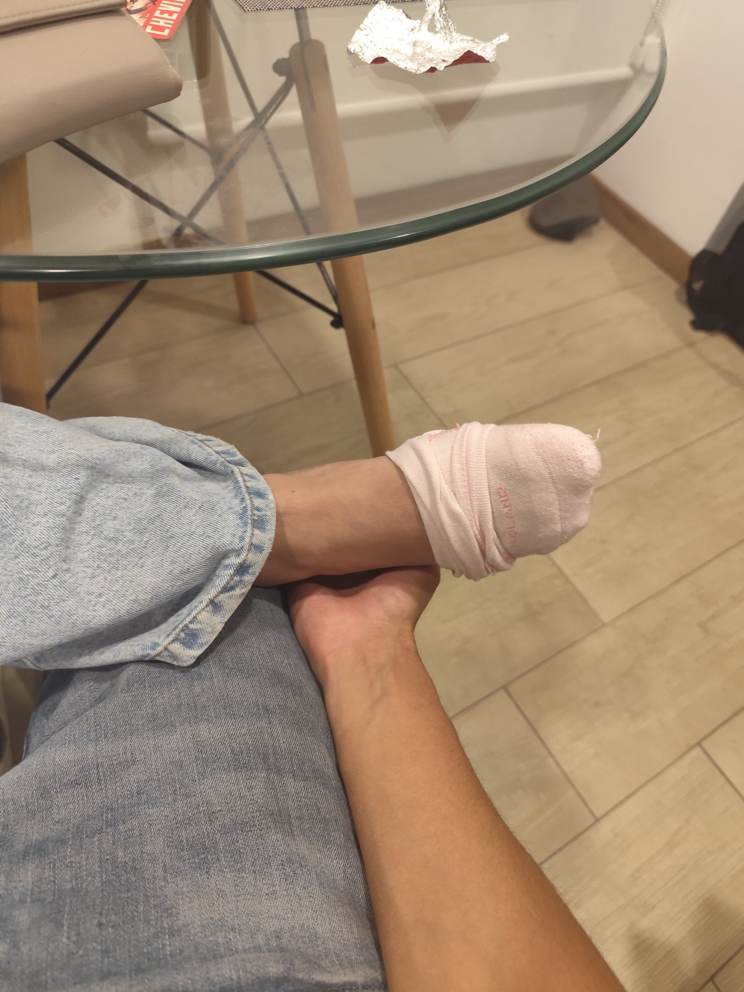 A friend has an bike accident so she hurt her foot, she is using crutches!