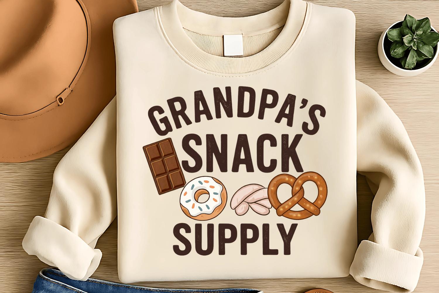 Grandpa’s Snack Supplier Sublimation PNG – Playful Grandpa Food Clipart for T-Shirts – Fun & Wholesome Design – 300 DPI Instant Digital Download