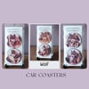 These car coasters are for placing in the cup holder inside your vehicle. If you spill your liquid you will just need to slip it out again and wipe down.