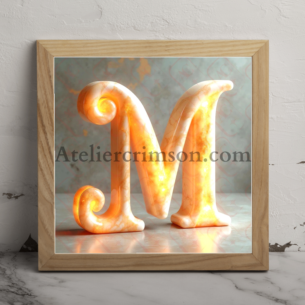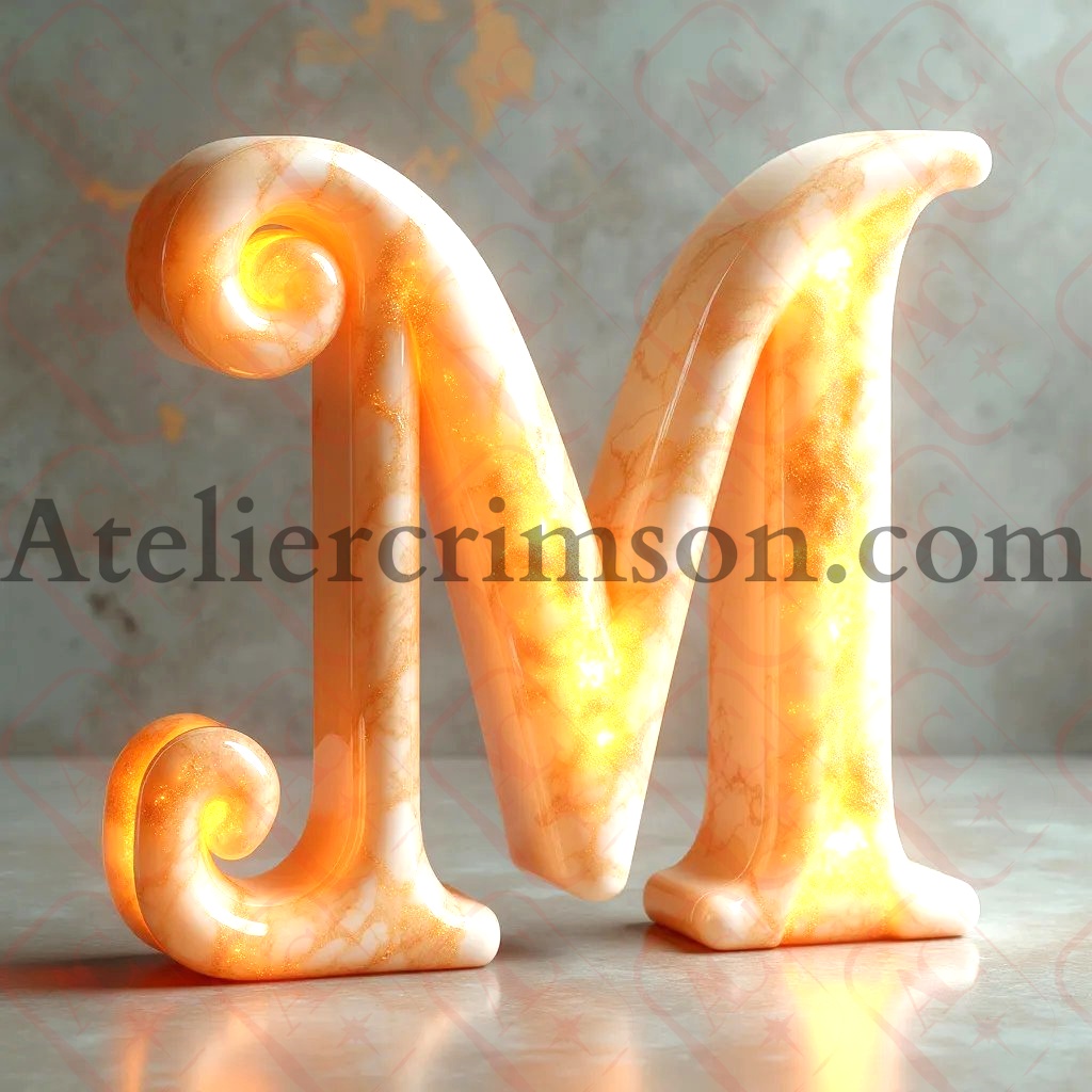 The letter M glowing creamy marble Download Now this high quality AI-generated image, perfect for adding a touch of tranquility and creativity to any space.