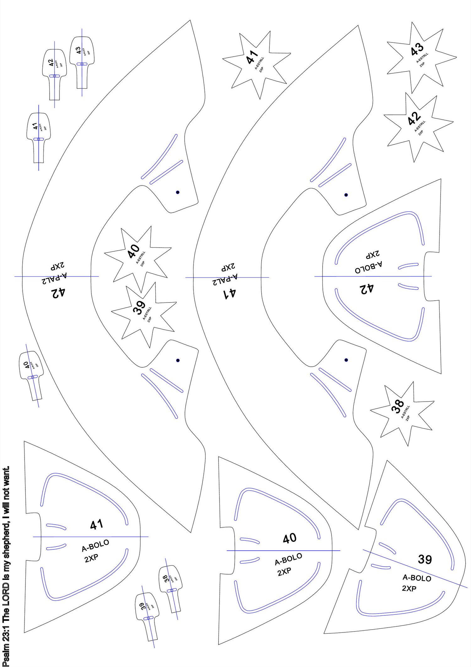 patrones en PDF hoja A3 conprimido WinRar, serie del 38 AL 43.