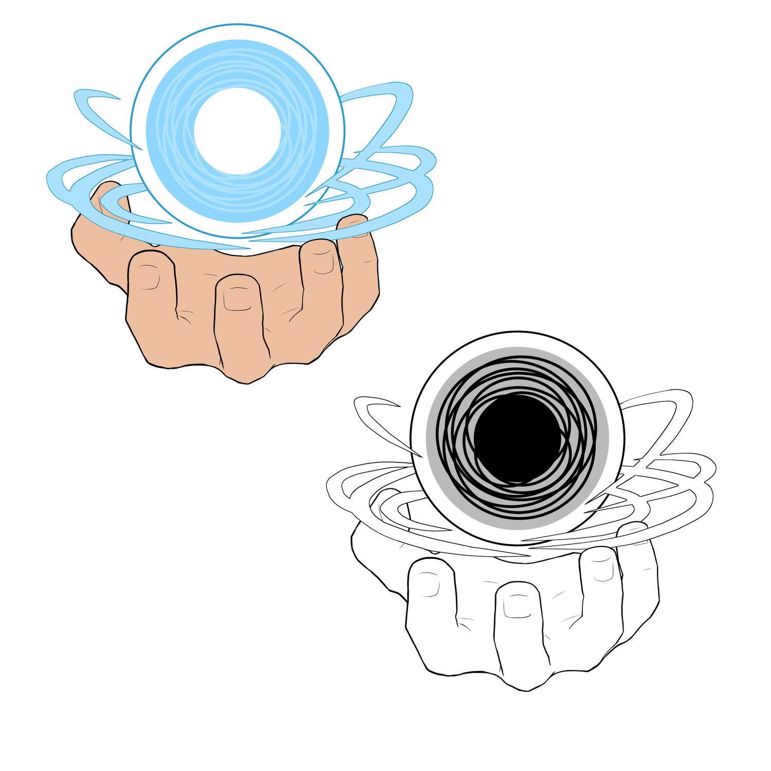 PNG, SVG, and PDF files of "Rasengan" illustration (colored + white versions) in high quality 300dpi.