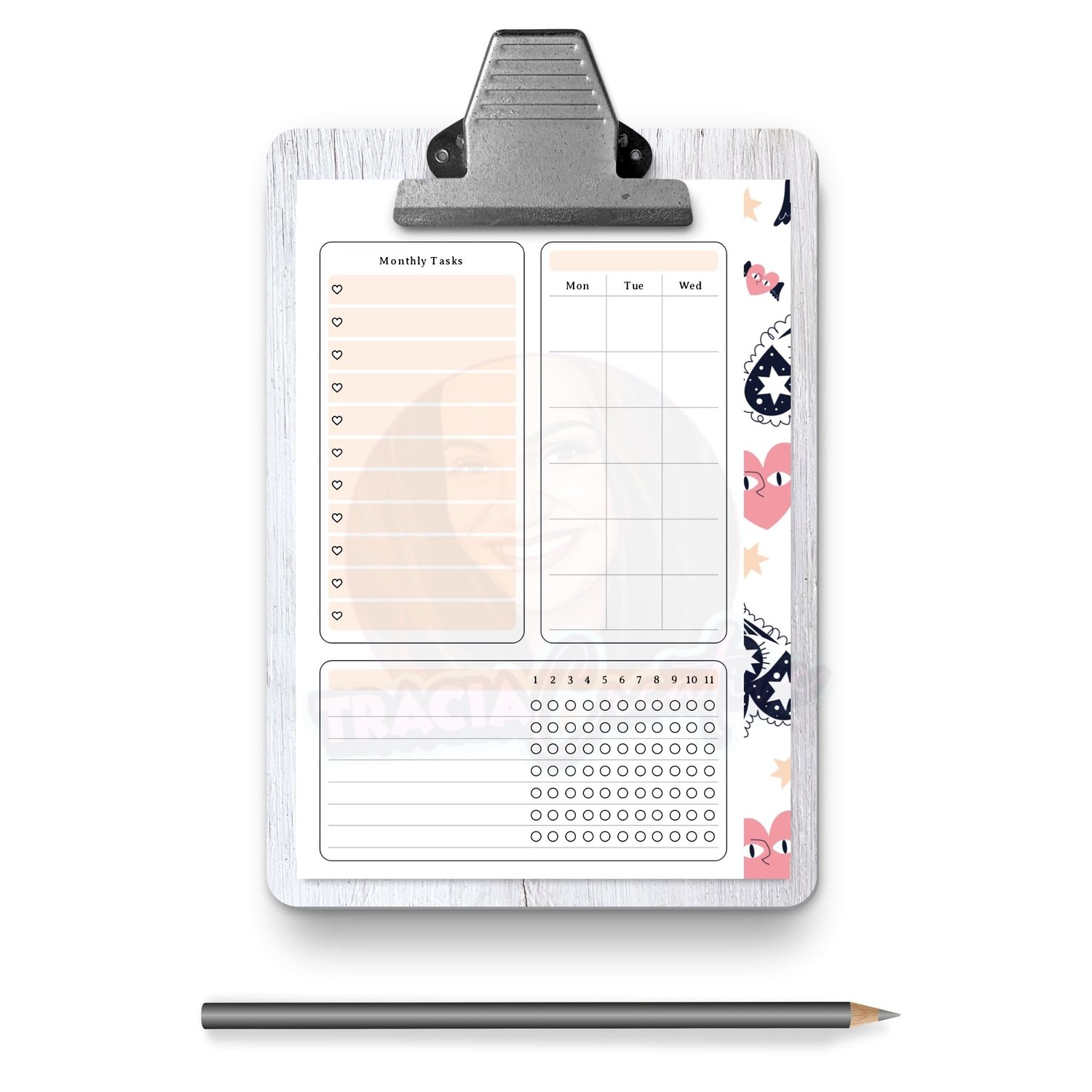 - Comprehensive Monthly Layout: Easily view all your important dates and deadlines at a glance, helping you manage your time efficiently.