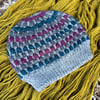 Perfect for either showing off a variegated yarn against a solid background or using up scraps, this DK weight hat makes for relaxed, easy knitting that looks like you put way more work into it than you did.