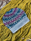 Directions are for a folded brim for extra warmth, but you can easily work it as a shorter, unfolded ribbed brim if you prefer.