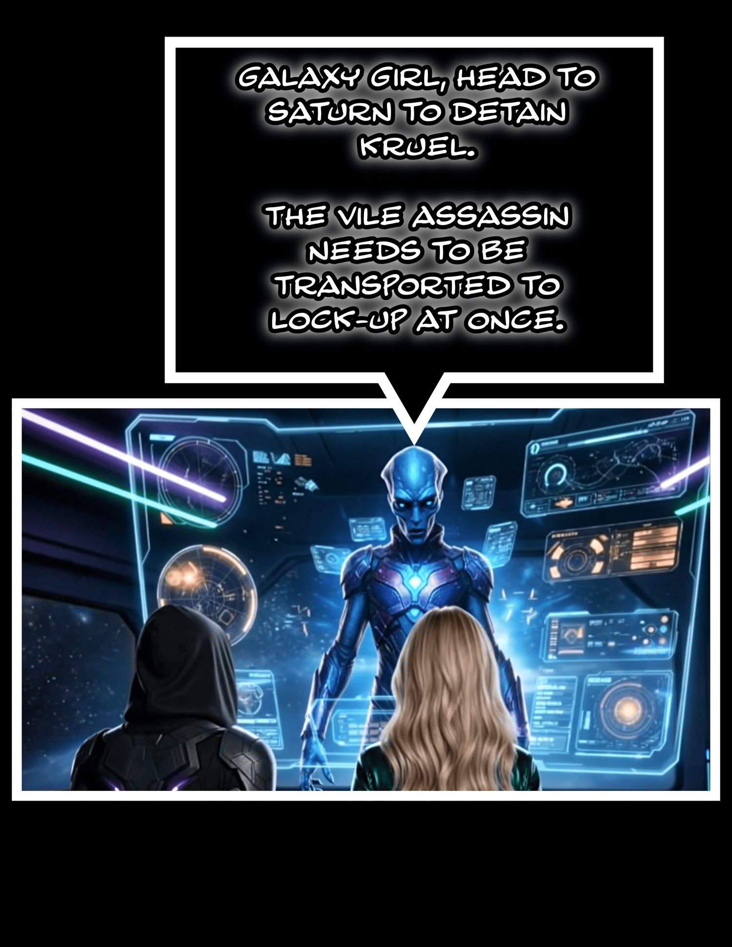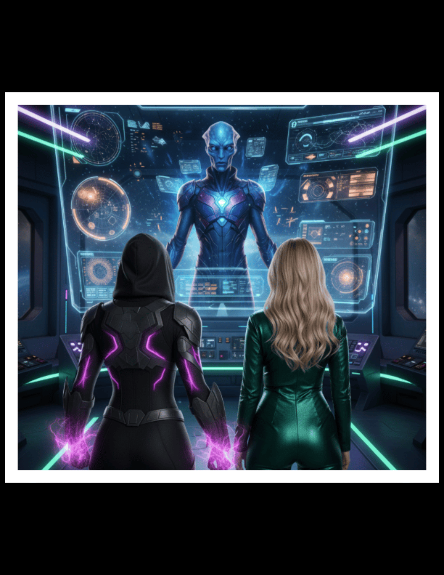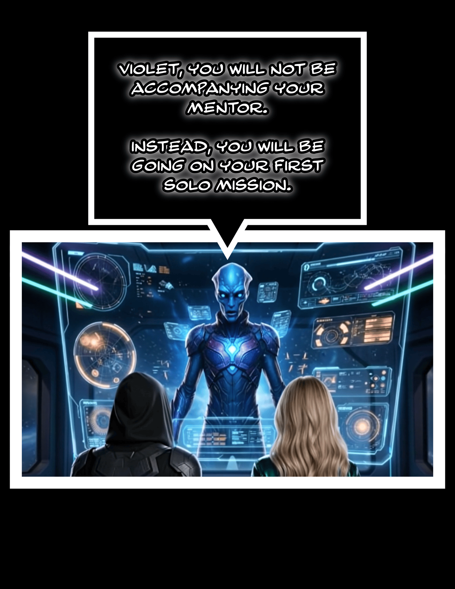 A year ago, an alien device permanently bonded to her, making her a galactic criminal. Now, she's Violet, a rookie training under the legendary Galaxy Girl to save the cosmos. Her unique device allows her to transform into powerful alternate versions of herself from other worlds , but she's far from mastering it. Sent on her first solo mission to recruit a powerful planetary ruler, Violet must prove her strength or risk failing her mission—and the trillions of lives that hang in the balance.