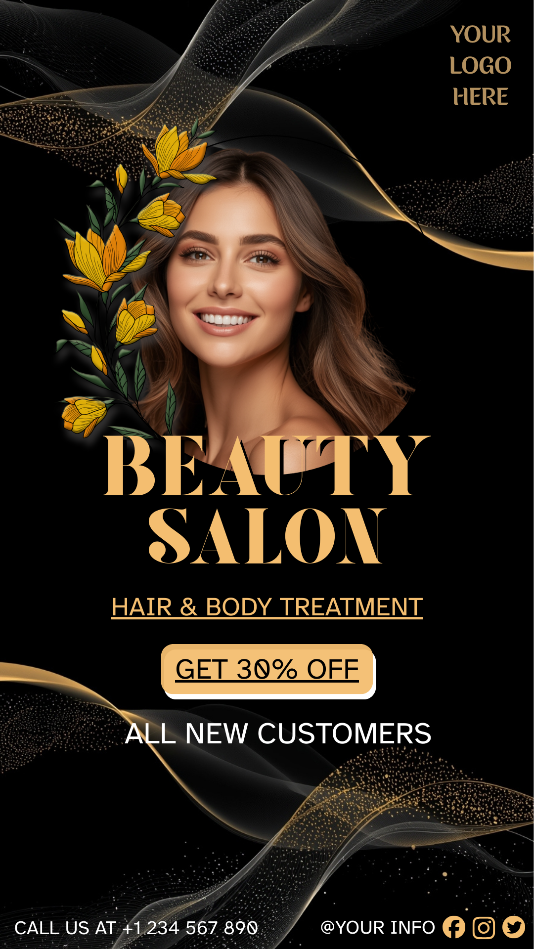 Stand out on social media with beautiful and professional Instagram Story designs. Edit in minutes and elevate your salon’s branding effortlessly!