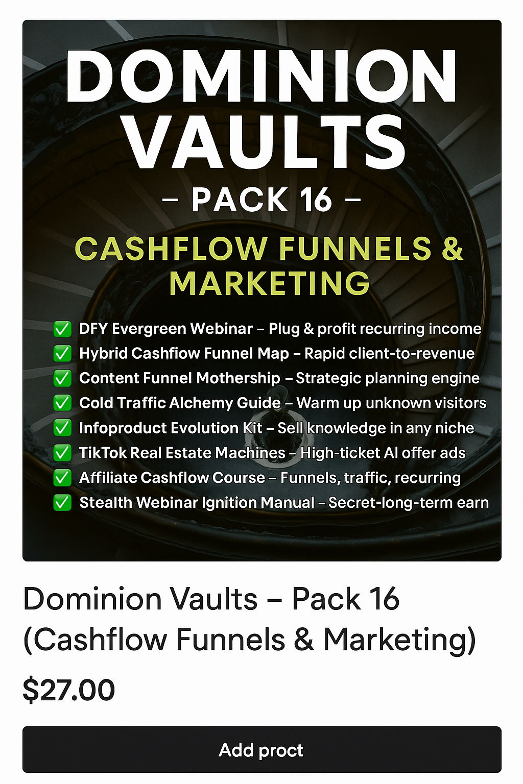 Dominion Vaults – Pack 16 (Cashflow Duplicators, 5-Minute Funnels & Offer Trigger Maps)