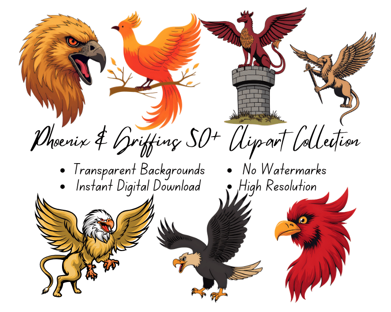 Phoenix & Griffins 50+ Clipart Collection | High-Resolution Digital Printables | Instant Download | No Watermark