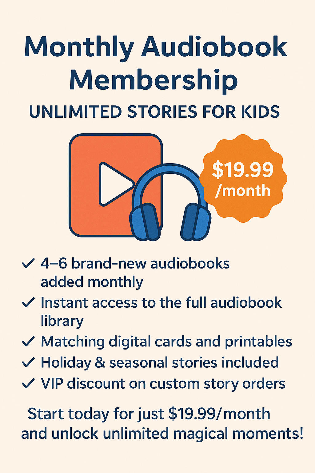 Welcome to the Monthly Audiobook Membership — your all-access pass to magical children’s stories every single month!
