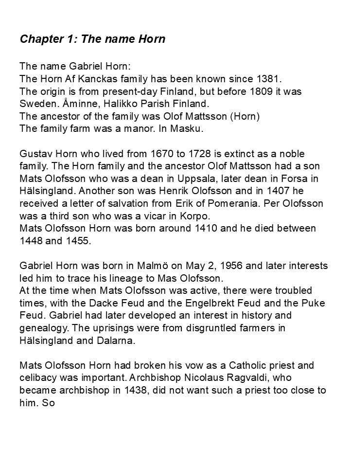 The ancestor of the family was Olof Mattsson (Horn)