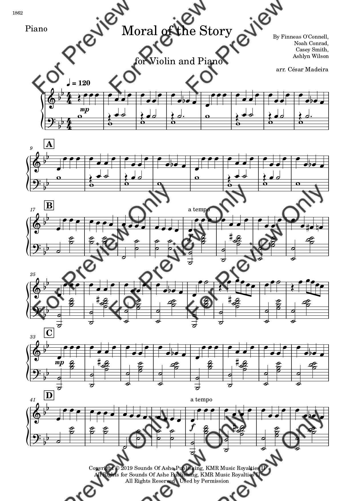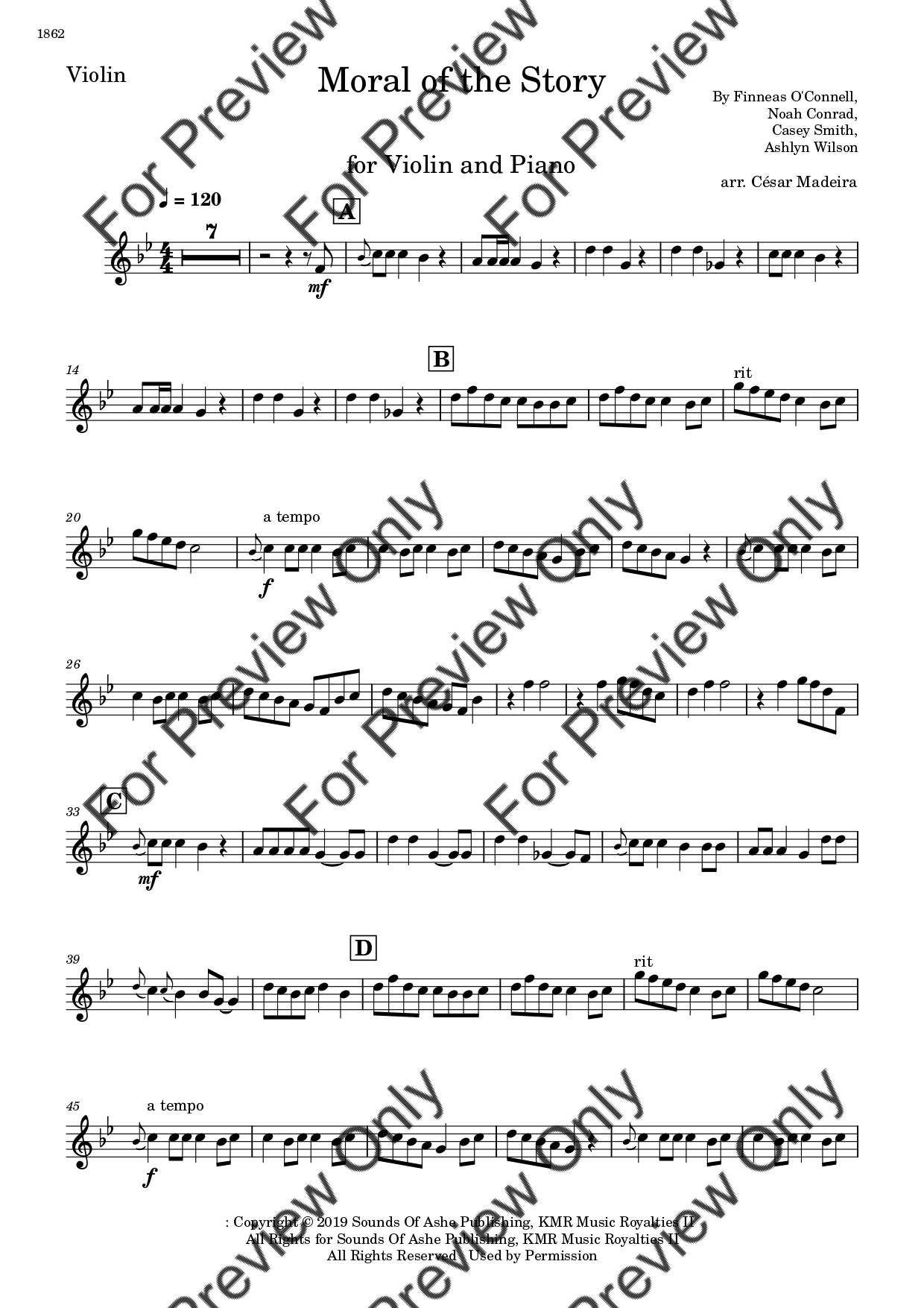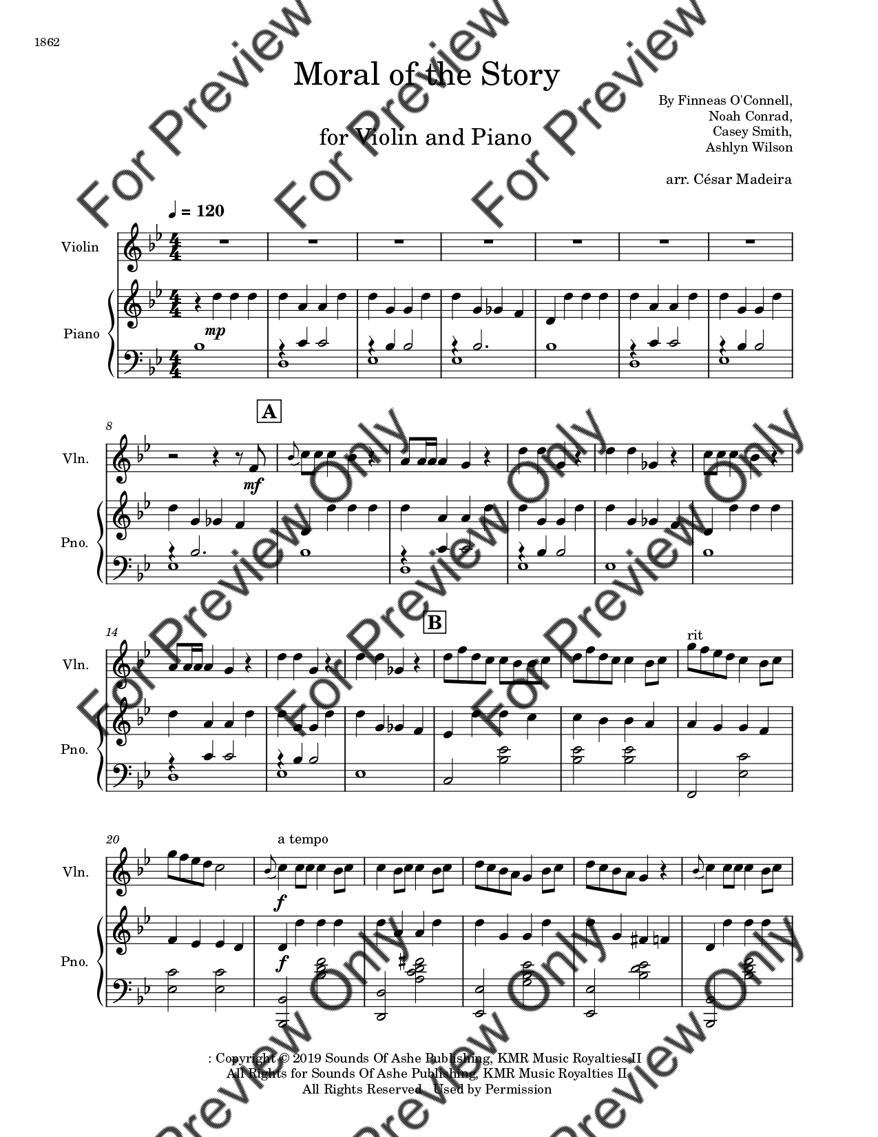 Moral Of The Story by Ashe. Arrangement for Violin and Piano. With Full Score and Individual Parts. Have fun!