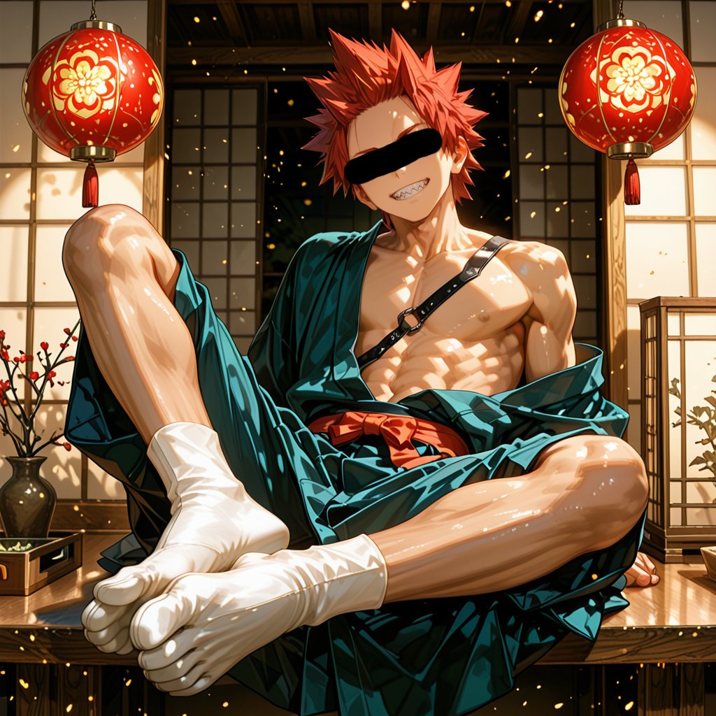 日本の正月をテーマに、着物を着用している男性を、キャラクターごとにお任せ作成しました。男らしいキャラクターの魅力を思い切って表現しました。