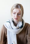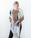 Modern minimal lines emerge in this sumptuous garter stitch scarf as color blocking is worked on a bias with a bit of intarsia. Arranged in an unexpected pattern that gives this stylish accessory a modern angle.