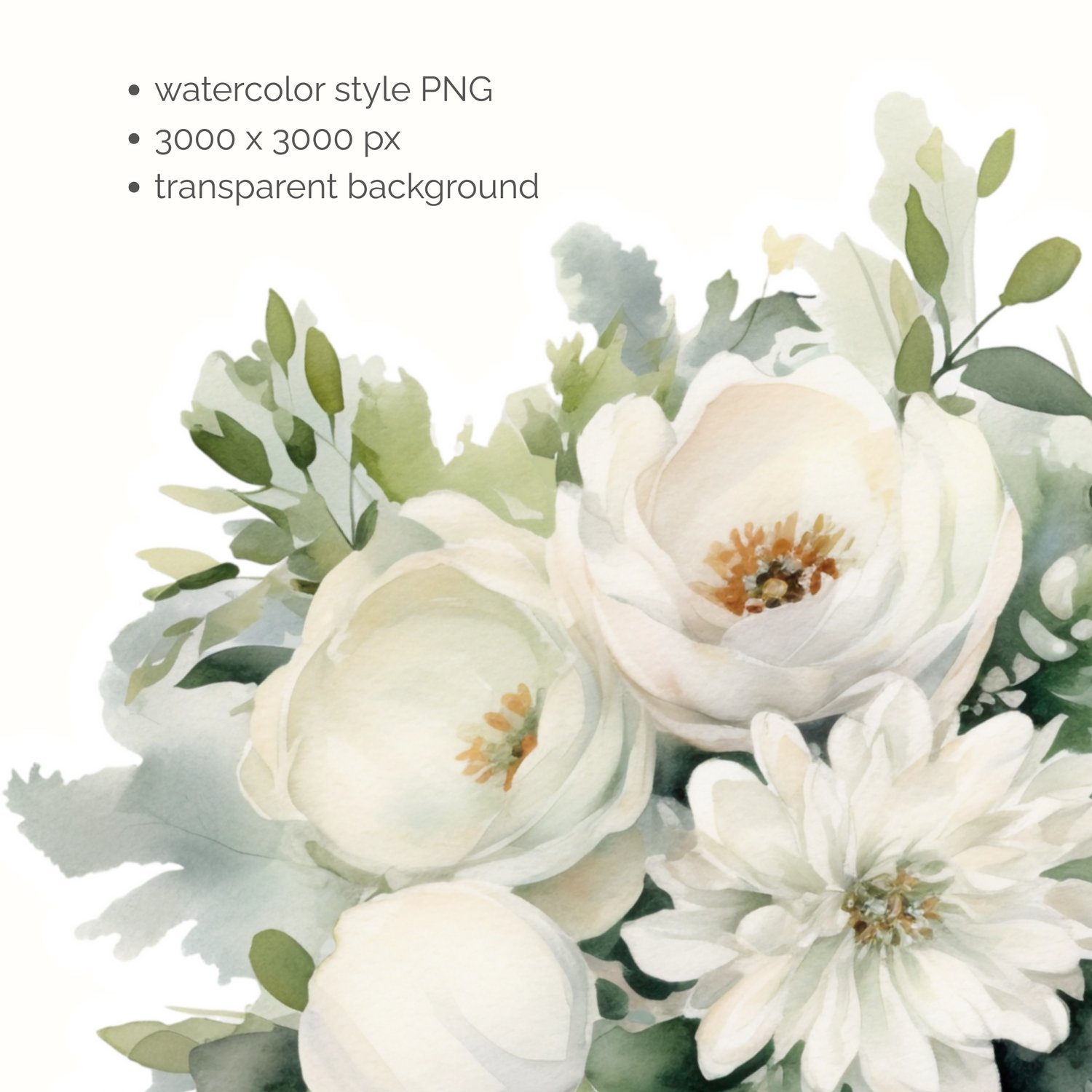 White Flowers Bouquet - PNG Clipart & Card Making Printables