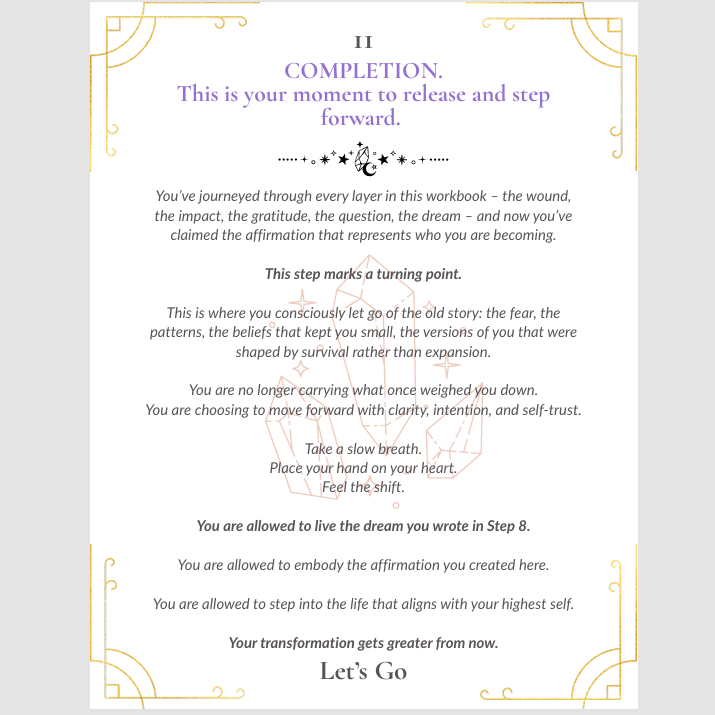 A digital workbook that takes you through 9 steps of self‑growth.