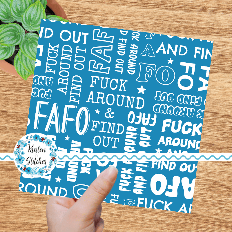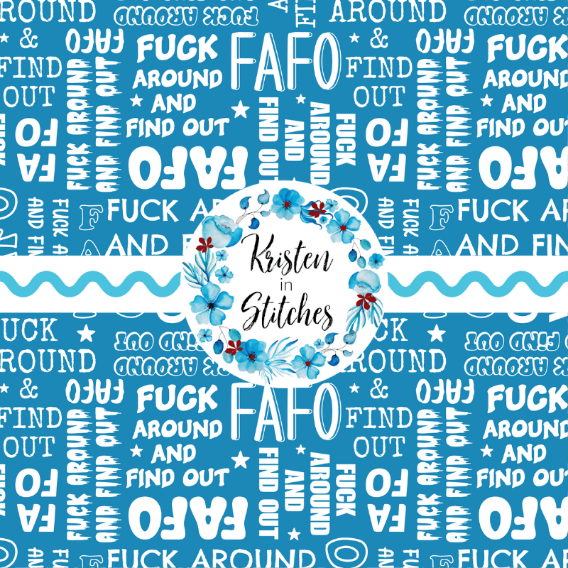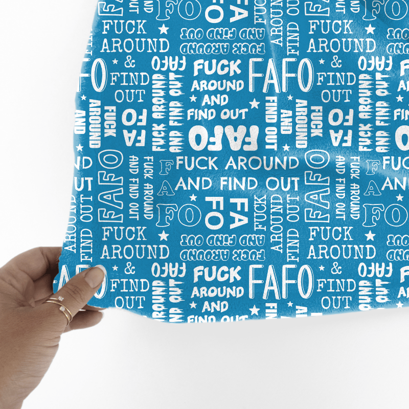 Fuck Around and Find Out! in white and blue.