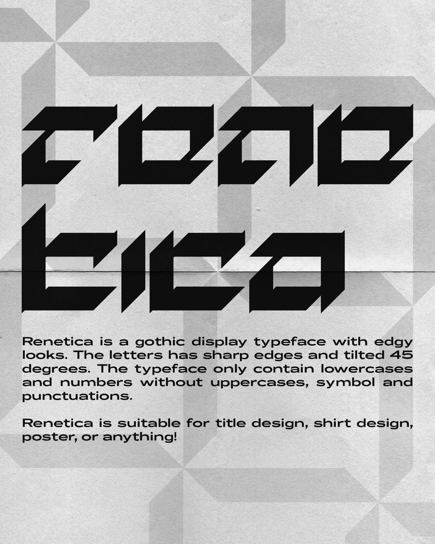 Renetica is suitable for title design,shirt design,poster,or anything!