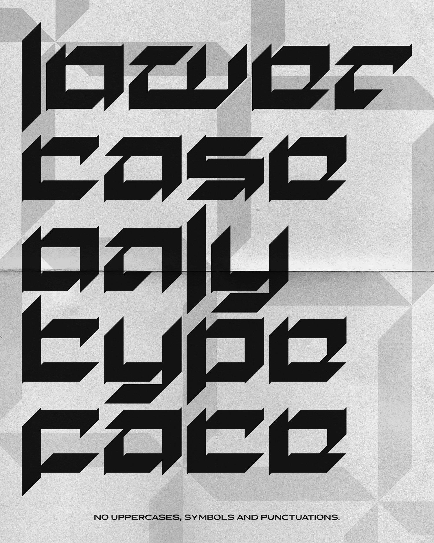 Renetica is a gothic display typeface with edgy looks. The letters has sharp edges and tilted 45 degrees. The typeface only contain lowercases and numbers without uppercases ,symbol and punctuations.