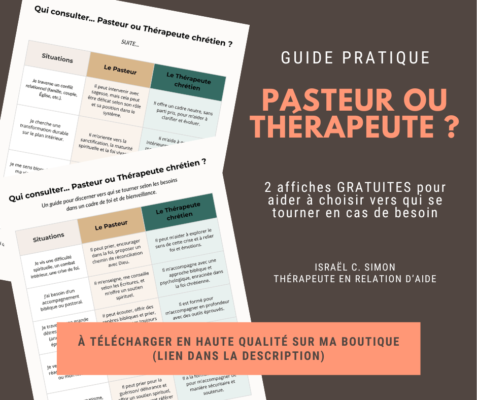Ps.: Pour en savoir plus sur le rôle du Pasteur et celui du Thérapeute chrétien en relation d'aide, cliquez ici : Pasteur ou Thérapeute... lequel choisir ?