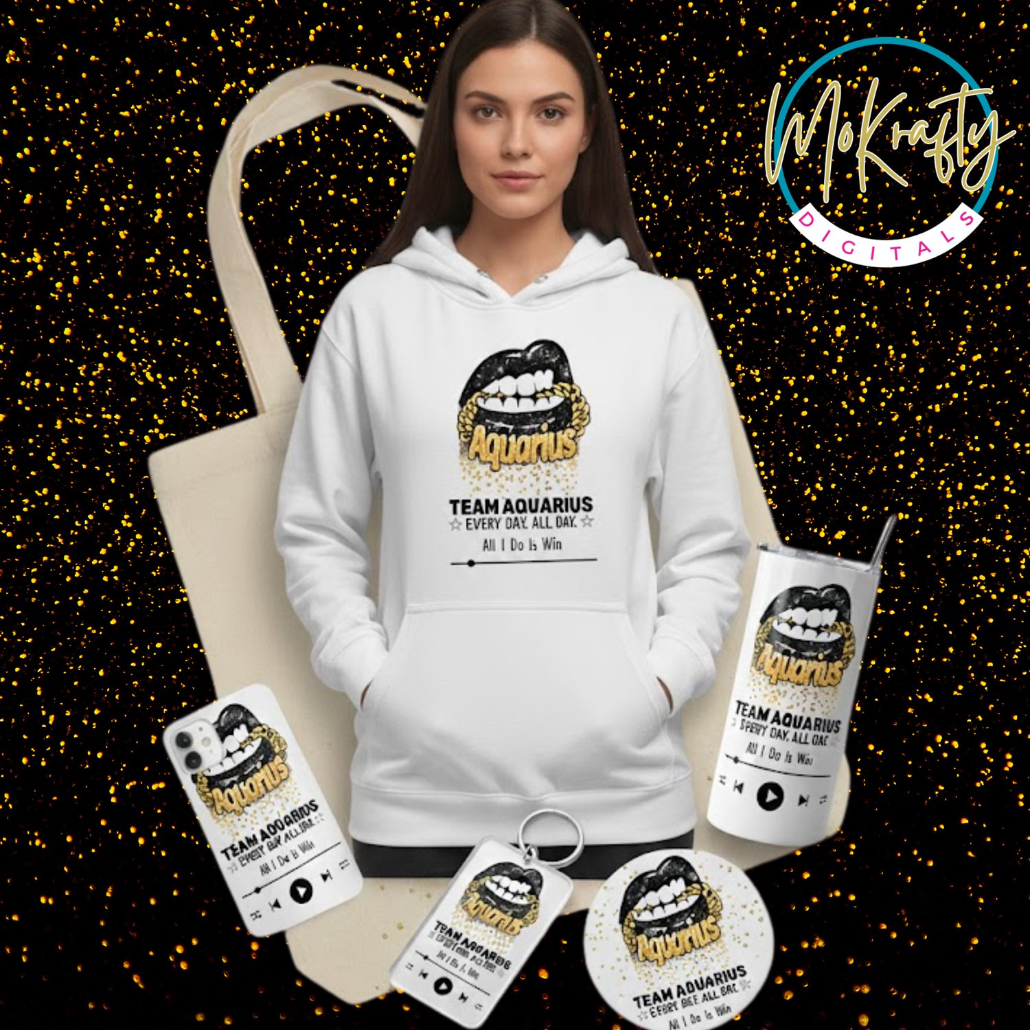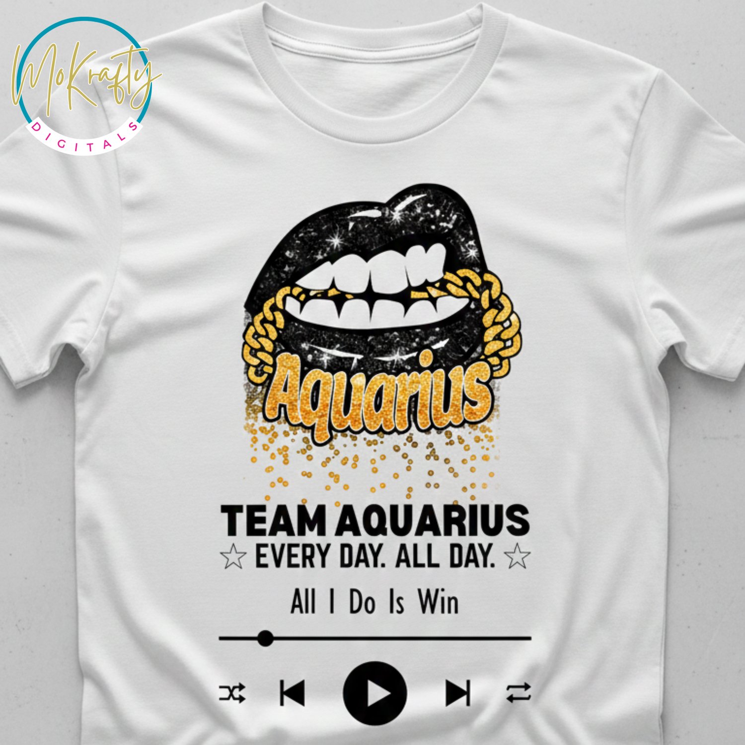 Team Aquarius "All I Do Is Win" Zodiac Sublimation PNG