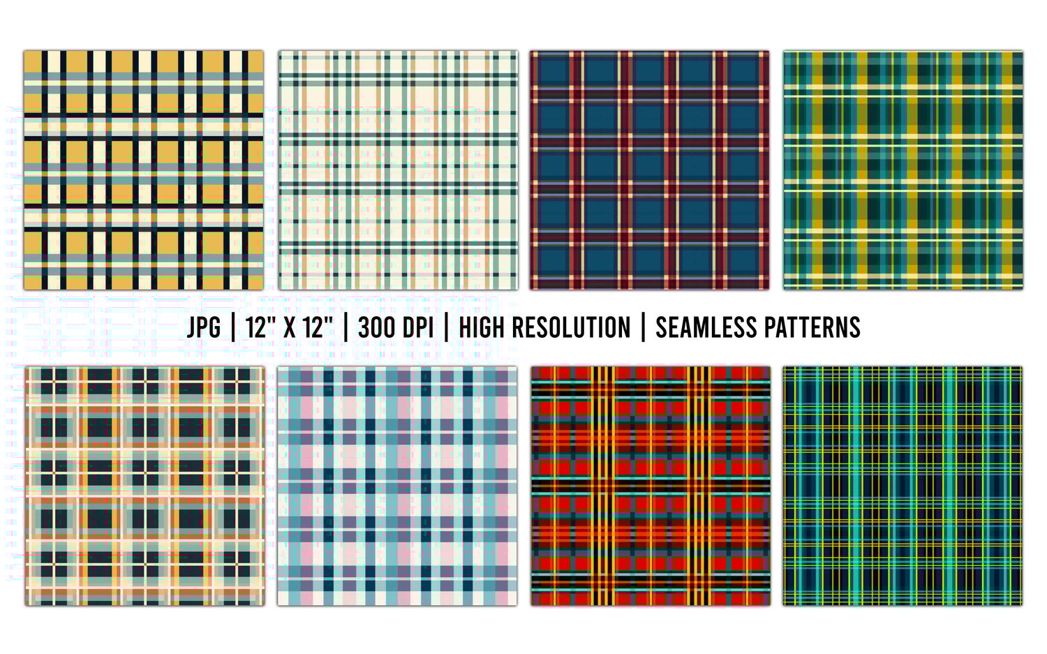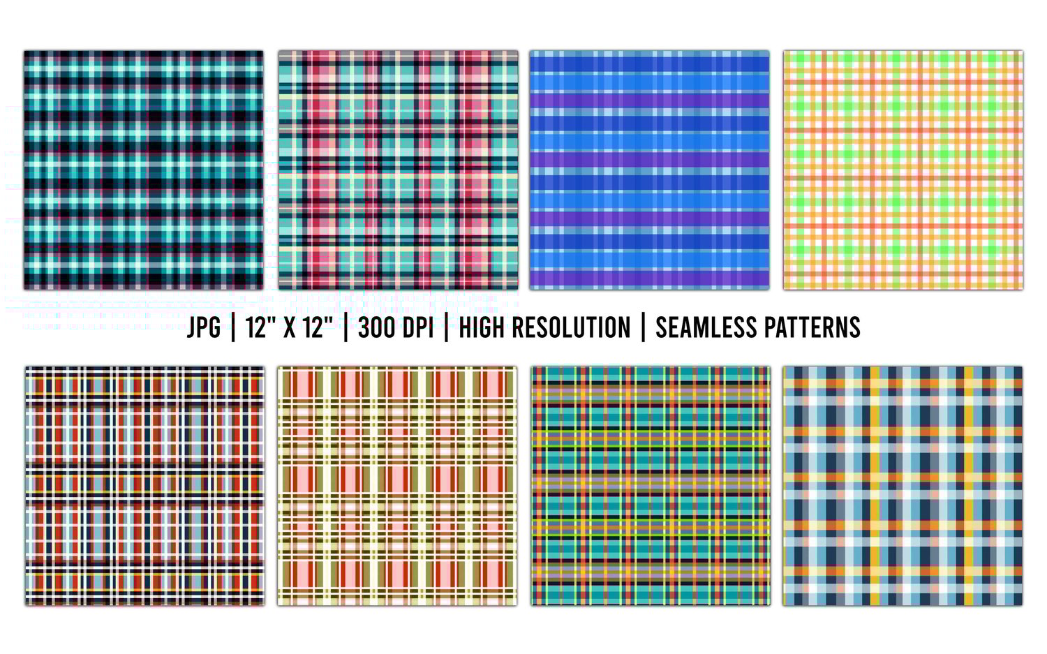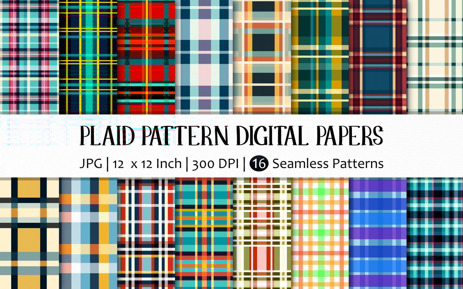 16 Plaid Seamless Pattern Digital Papers within 1 zip file