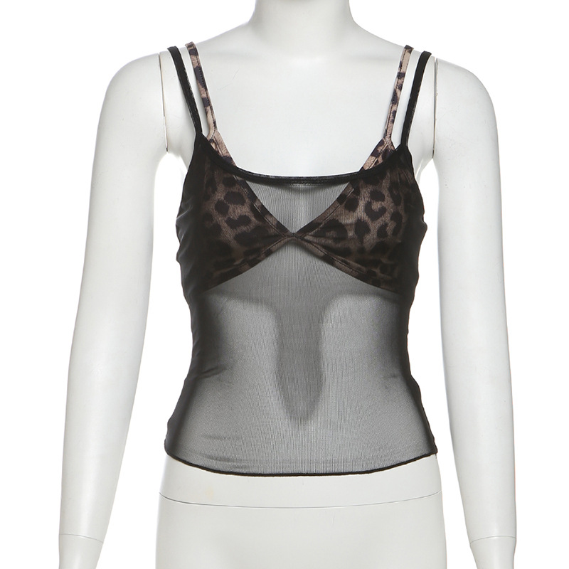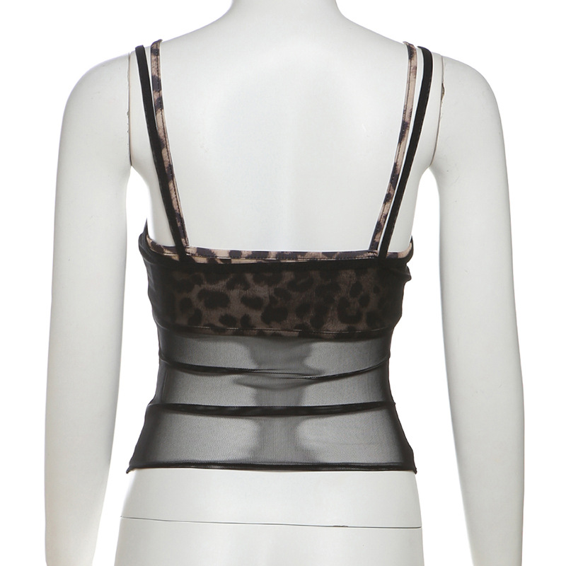 Vintage style leopard sexy bra lingerie black mesh camisole