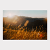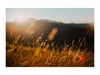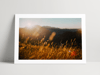 À l’arrière-plan, volontairement flou, se devinent les montagnes du parc. Elles ne sont qu’une silhouette douce, une ligne d’ombre où le soleil vient se déposer avant de disparaître. Ce qui domine, c’est la sensation d’être allongé dans l’herbe, de regarder le monde se teinter d’or, de respirer la fraîcheur du soir. C’est exactement la position dans laquelle j’étais : étendu, entouré des rires de mes amis, porté par un vent qui semblait emporter la fatigue de la journée. Le mercure descendant lentement, la lumière dansant sur les tiges, tout donnait à ce moment une dimension à la fois simple et profondément poétique.