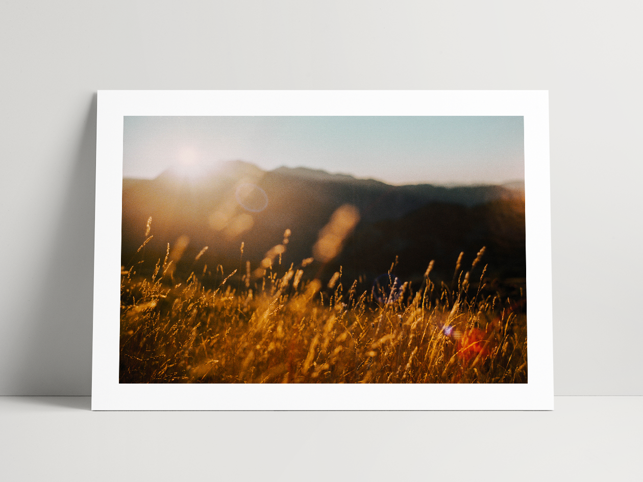 Ce cliché, pourtant très épuré — de l’herbe, un soleil, une montagne — condense pour moi quelque chose d’essentiel : la beauté de l’instant présent. Dans ce premier plan vibrant, ces herbes qui ondulent sans résistance, je vois le temps qui passe, la nature qui change, mais aussi l’accueil qu’elle nous offre lorsque nous nous y abandonnons. Elles étaient ce soir-là le tapis doré qui nous portait, mais aussi les témoins immobiles d’un moment unique. En photographiant cette scène, j’ai voulu figer ce souffle, cette douceur, cette impression fugace d’être exactement là où il fallait être.